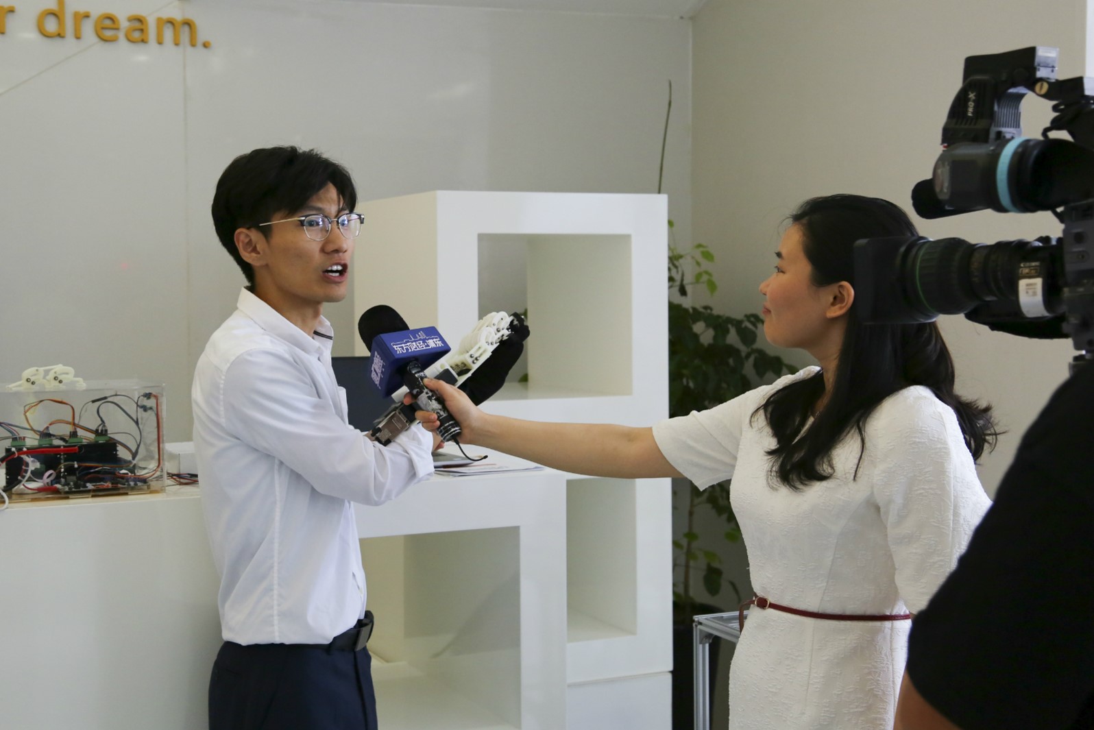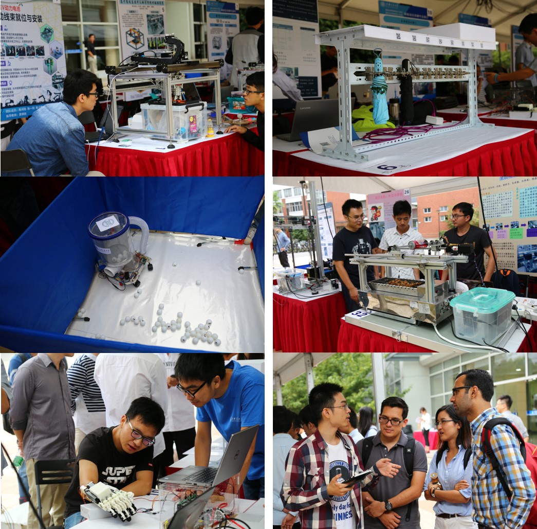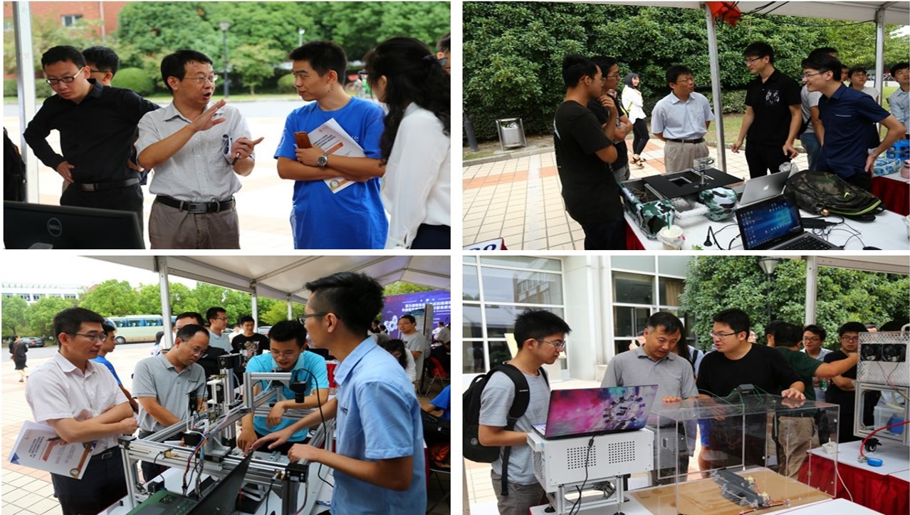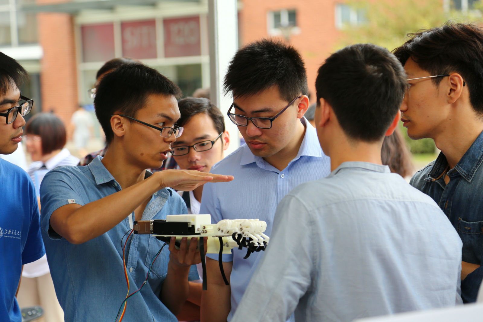 本次项目式实践课程竞赛,恰逢全国“大众创业、万众创新”双创活动周,课程竞赛中的部分获奖作品智能图书整理小车、手指康复机器人、智能导盲机器人、自跟随智能小车,应邀在2017年全国大众创业万众创新活动周“上海交大-闵行”专场活动中展示,365英国官网专业学位研究生学子的创新实践设计理念及作品吸引了社会各界的广泛关注。