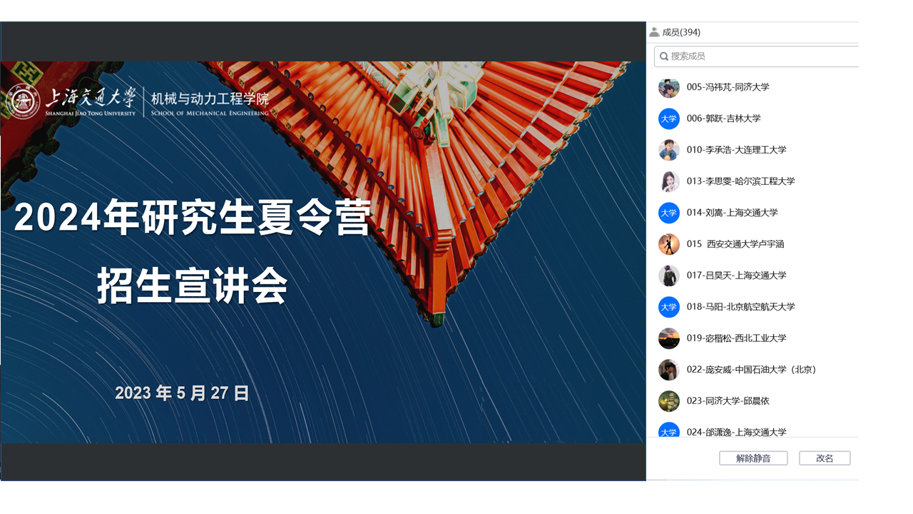 5月27日,365英国上市公司官网在线举办2024年研究生夏令营招生宣讲会。365英国上市公司官网副教务长吴静怡、学院院长杜朝辉、副院长李玉阳、薄板结构制造研究所所长李永兵、核科学与工程学院院长顾汉洋、工业工程与管理系副系主任夏唐斌等,与广大学子齐聚云端,就2024年研究生夏令营活动进行了宣讲与交流。