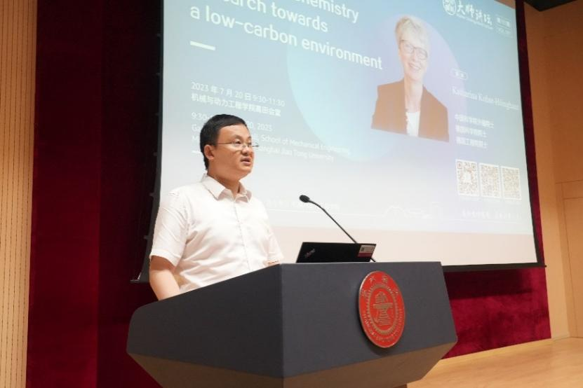邓涛代表学校致辞,指出Katharina Kohse-Höinghaus院士在燃烧诊断学、燃烧化学研究领域学术成就斐然,并为推动我国燃烧领域国际合作做出了巨大贡献,希望同学们能从Katharina Kohse-Höinghaus院士的科研成果中了解燃烧科学前沿,助力探索科研之路。