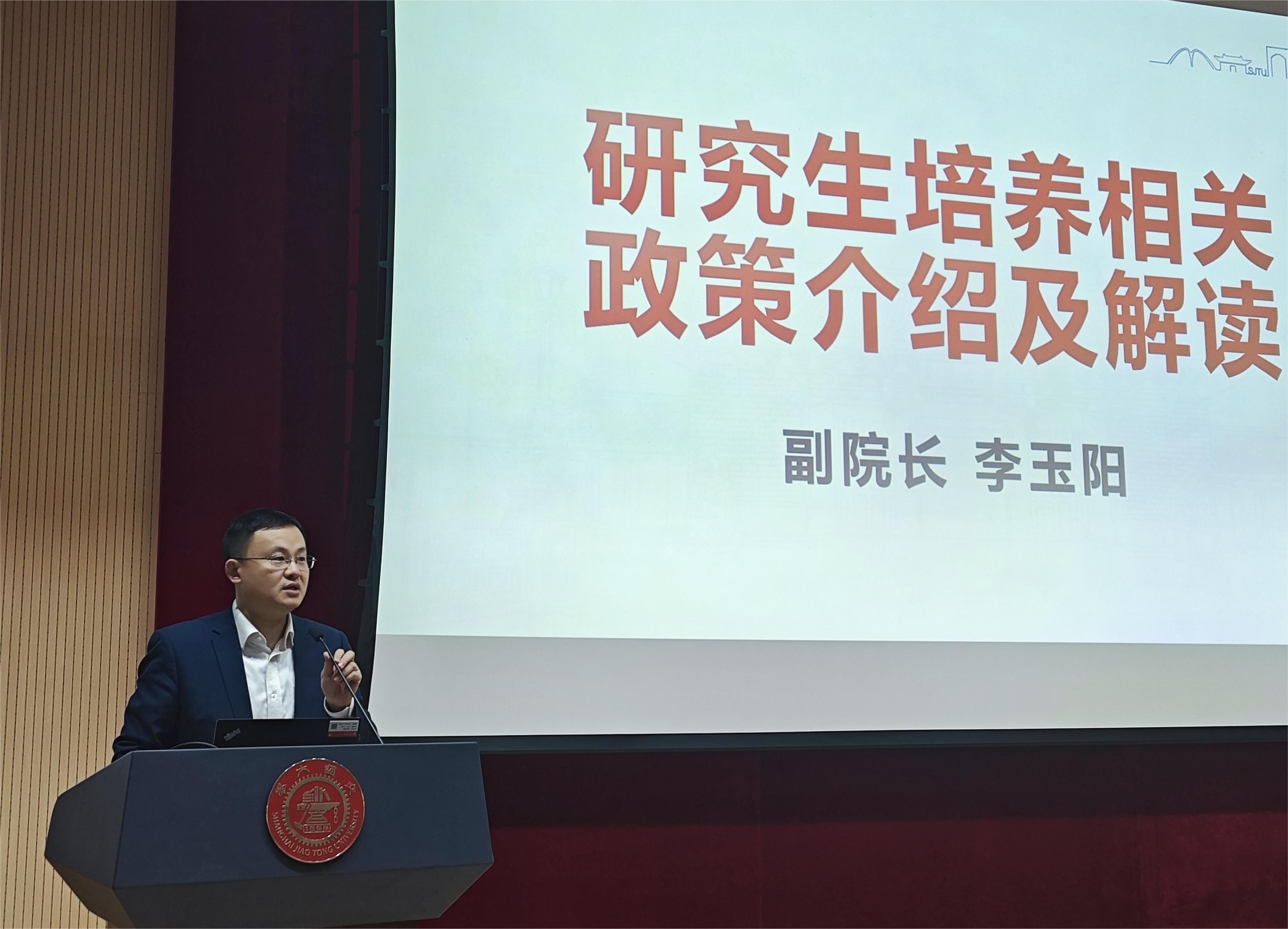 杜朝辉做开场致辞,强调研究生导师应做到“从严、重导、求新、关爱”,严格遵守学校学院规章制度,教导学生完善品格,引导学生热爱科研。李玉阳就学院研究生培养相关政策和规章制度进行了全面介绍,对基地招生、直博招生改革、博导遴选、学术自治管理等进行了详细阐释。