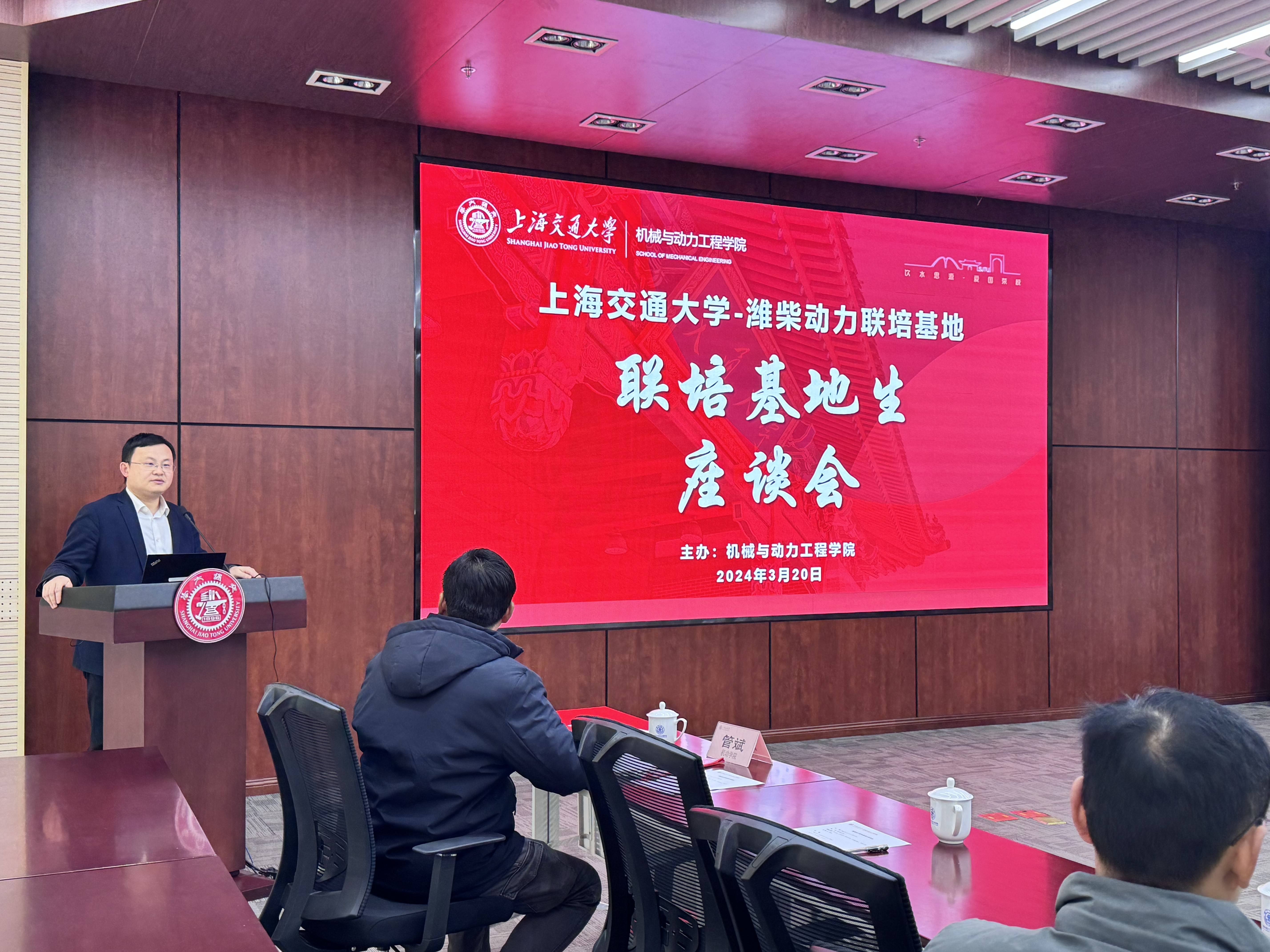 谭治学从企业介绍与产业发展战略、职业发展、联培生支撑保障三个方面,对企业情况和入驻安排做了详细介绍。管斌对潍柴动力联培基地企业奖学金进行说明,该奖学金是潍柴动力基地研究生专项奖学金,以基地生培养过程关键考核环节的结果为评定发放依据。基地在读研究生围绕课程学习、科研进展、未来规划等依次做了发言。讨论环节,校内导师与企业嘉宾就联培学生课题选题、校企导师库建设等话题进行了深入交流。