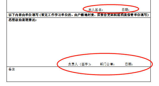 (1)政审表必须提交原件,需要加盖档案管理部门或工作所在单位人事、政工部门印章的,并有负责人签字。无部门印章及政审鉴定人签字的表格无效。