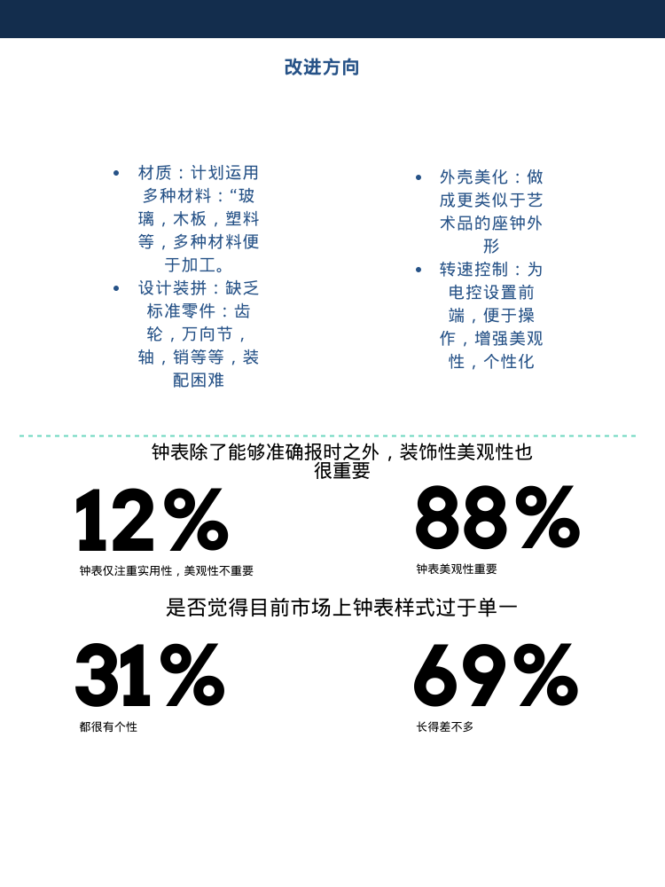 我们打算设计一款在保持了报时功能基础上,通过传动装置能够完成一些动作,也能够自主拼装,具有趣味性的钟表,并且希望这款钟表能够为房间增加活泼的氛围。我们在设计确定了以飞鸟的形象作为时钟的主要装饰以让用户感受到距离美。我们希望实现了运用一个动力齿轮及多个传动齿轮将动力传递给各部分进行独立运动的效果。在驱动设计部分,我们希望利用arduino来控制电机,以达到控制转速,进而能够通过减速齿轮,实现准确报时。