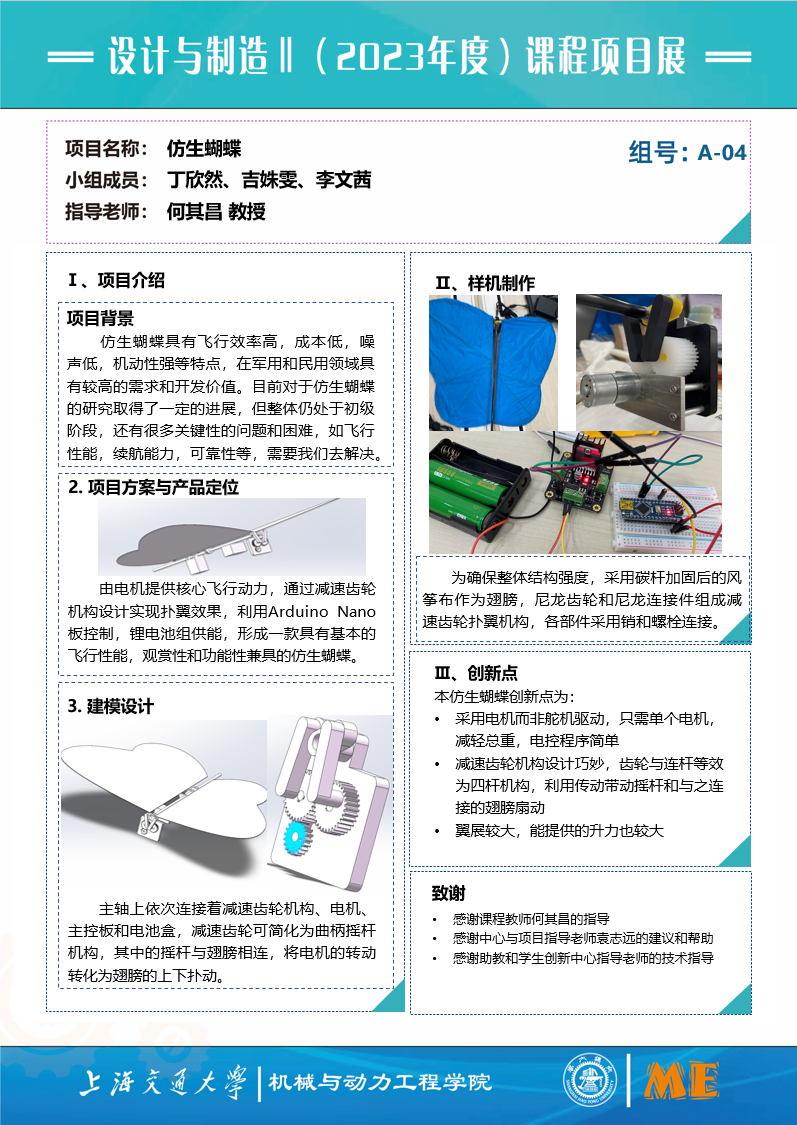 1、实现具有基本功能和外形的仿生蝴蝶制作。