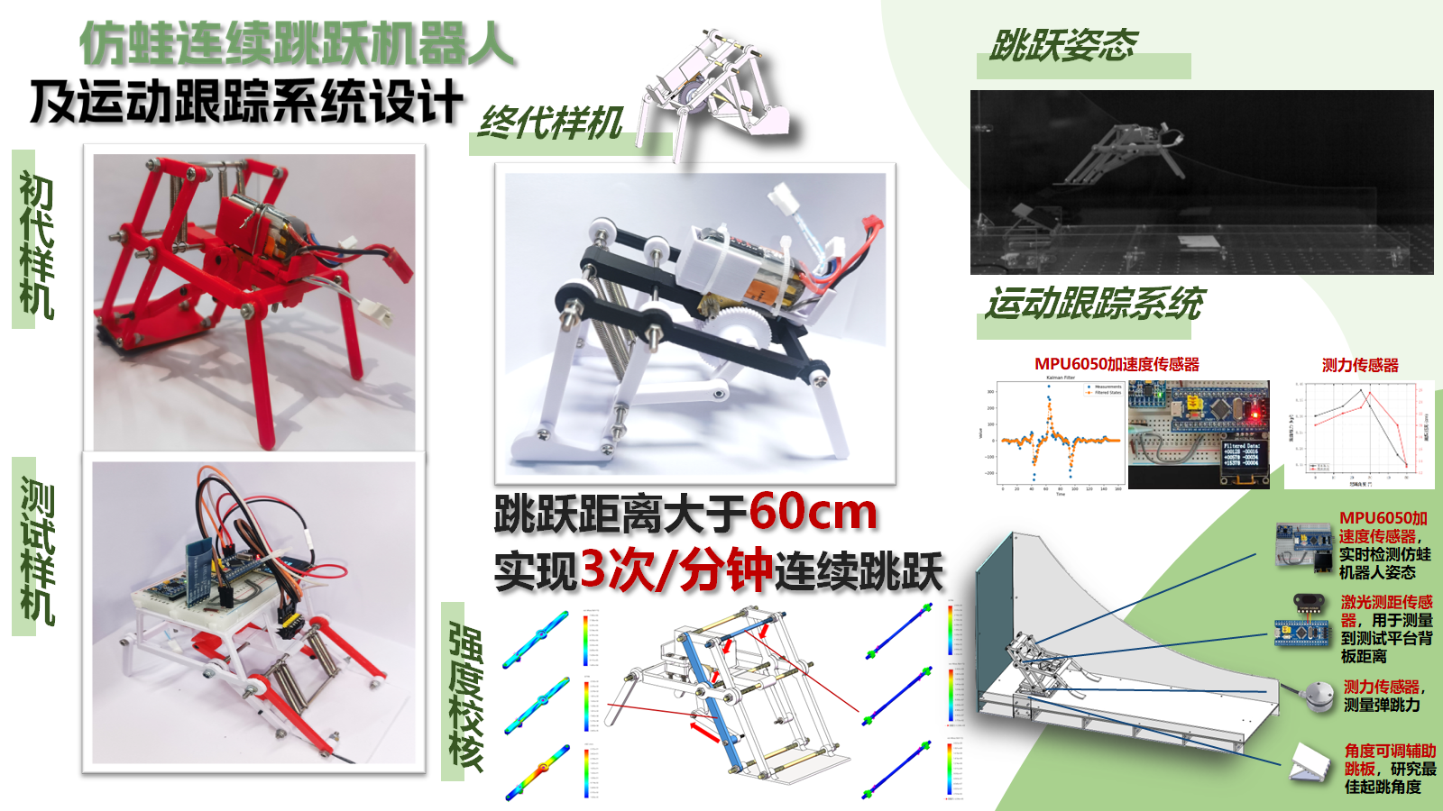 此外,为了提升仿生青蛙的性能,实现连续跳跃的目标,除机创赛规定的设计指标外,对于项目整体,我们还希望达到的目标有: