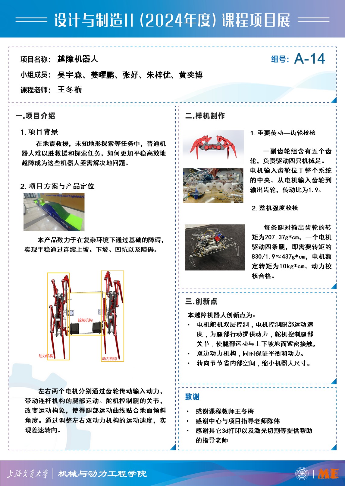 电机舵机双层控制,电机控制腿部运动速度,为腿部行动提供动力,舵机控制2腿部关节,使腿部运动与上下坡地面紧密接触。