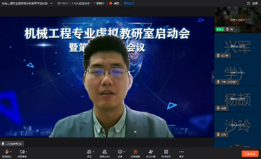 奚立峰作总结发言,表示机械工程专业虚拟教研室将围绕“共建、共享、共赢”的定位,探索建设新型基层教学组织,打造教师教学发展共同体和质量文化,提升机械工程专业教师育人能力、扩大学科影响力、深化专业教育教学改革、提升人才培养质量,力争在全国虚拟教研室试点工作中起到示范引领作用。