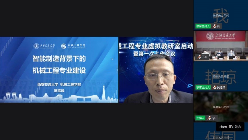 西安交通大学机械工程学院院长陈雪峰教授以西安交通大学智能制造工程专业为例作“智能制造背景下的机械工程专业建设”主题报告,重点介绍了相关专业需求背景、建设情况、培养方案及专业资源基础情况,为持续开展培养方案与课程体系建设等虚拟教研室相关教研活动树立了典范。
