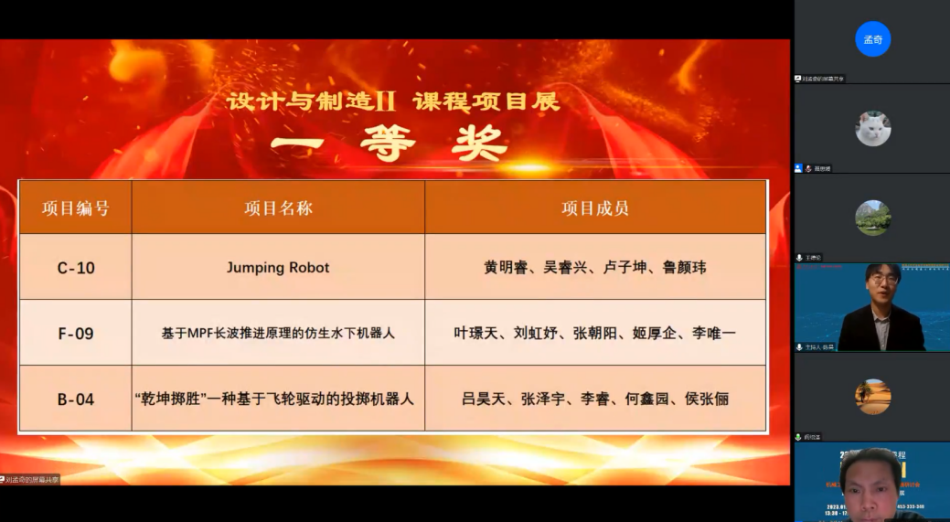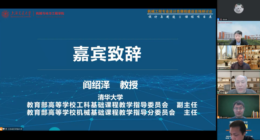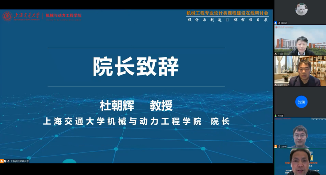 1月14日,由教育部首批虚拟教研室建设试点“机械工程专业虚拟教研室”、365英国上市公司官网365英国上市公司官网主办,机械原理课程群虚拟教研室、机械设计课程群虚拟教研室协办的机械工程专业设计类课程建设在线研讨会暨“设计与制造Ⅱ”课程项目展于线上成功举办。教育部高等学校机械基础课程教学指导分委员会主任、清华大学阎绍泽教授,教育部机械原理课程群虚拟教研室主任、大连理工大学王德伦教授,教育部机械设计课程群虚拟教研室常务副主任、哈尔滨工业大学王黎钦教授,副主任张锋教授,上海交大365英国上市公司官网院长杜朝辉、党委副书记胡永祥,教育部机械原理课程群虚拟教研室副主任、“设计与制造Ⅱ”课程负责人郭为忠教授,虚拟教研室高校成员单位教师代表及参展学生等300余人参加了活动。