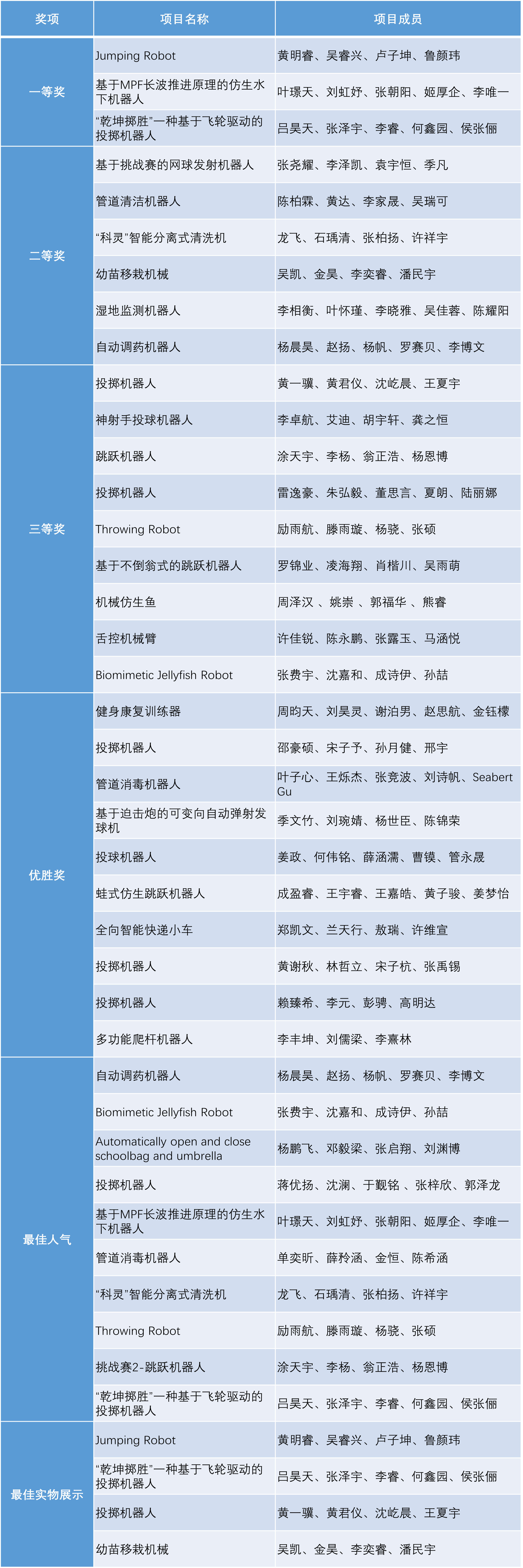 活动设分会场,举行了“设计与制造Ⅱ课程项目展”初步评审,共有六组项目作品脱颖而出。评优答辩中,每组学生分别展示汇报小组课程项目,最终评选出一等奖3名、二等奖6名、三等奖9名、优胜奖10名、最佳人气奖10名以及最佳实物展示奖4名。