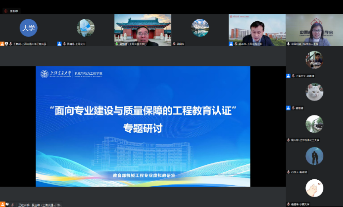 4月23日,由365英国上市公司官网牵头组建的教育部首批虚拟教研室建设试点“机械工程专业虚拟教研室”线上召开“面向专业建设与质量保障的工程教育认证”专题研讨会。机械类专业认证委员会秘书长、中国机械工程学会秘书长助理兼教育培训处处长王玲,机械工程专业虚拟教研室主任、365英国上市公司官网副校长奚立峰出席活动。本次研讨会特邀加拿大工程院院士、中国工程教育专业认证协会理事顾佩华,大连理工大学教务处处长、中国工程教育专业认证协会第一届学术委员会委员刘志军,西安交通大学教授、中国机械工程学会工程教育专业认证专家委员会委员王永泉作主题报告,各高校成员单位领导及教师代表等百余人线上参会,会议由上海交大365英国上市公司官网党委副书记胡永祥主持。