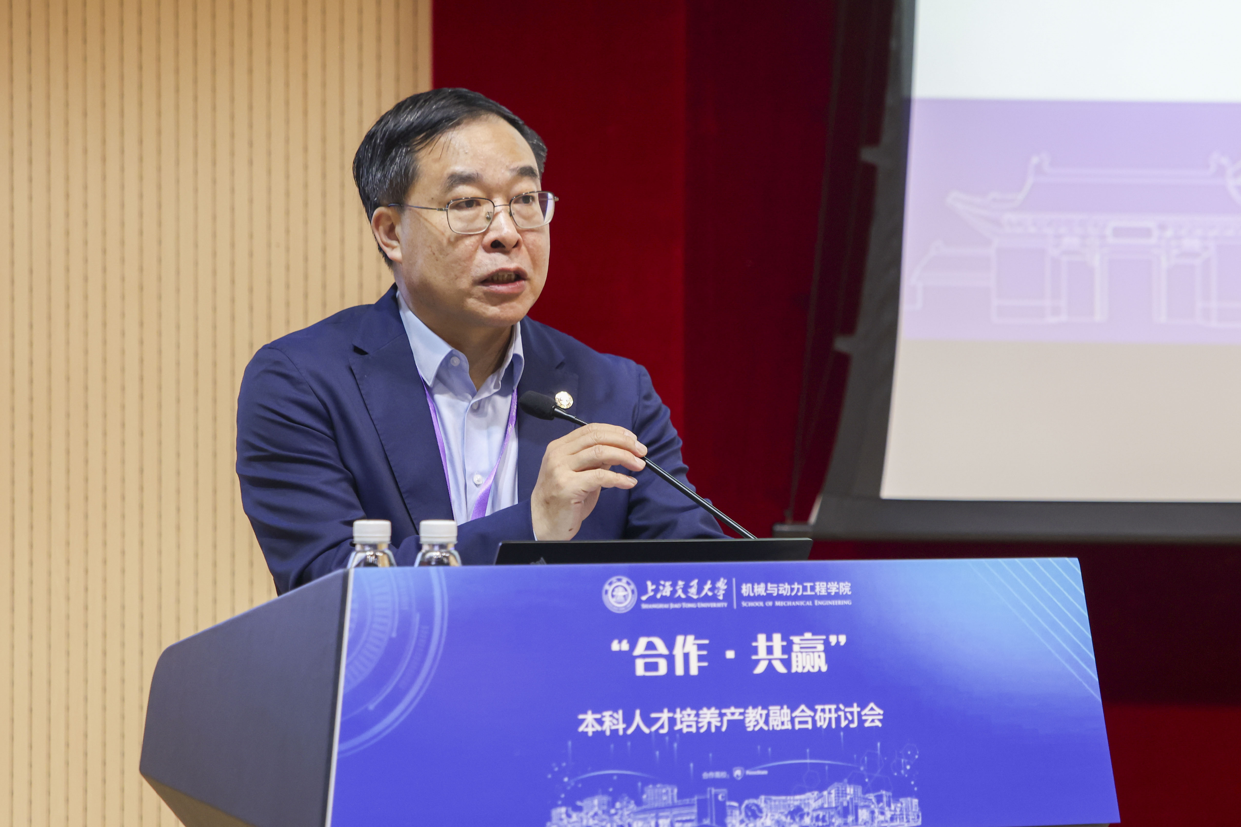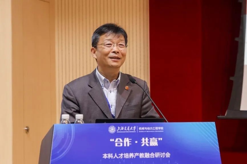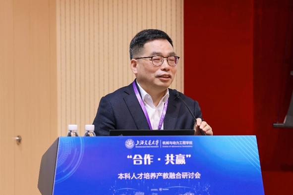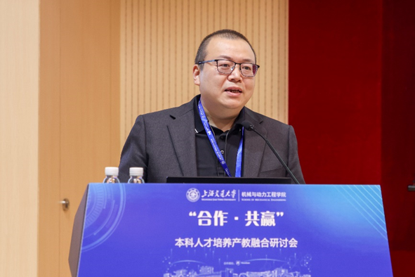 奚立峰致欢迎辞,表示“产教融合”培养方式有利于促进学生与企业之间的相互了解,希望在教指委的指导下,大家以本次研讨为契机,集思广益、深入交流,瞄准科技发展和国家建设需求,助力创新型机械动力专业人才培养。