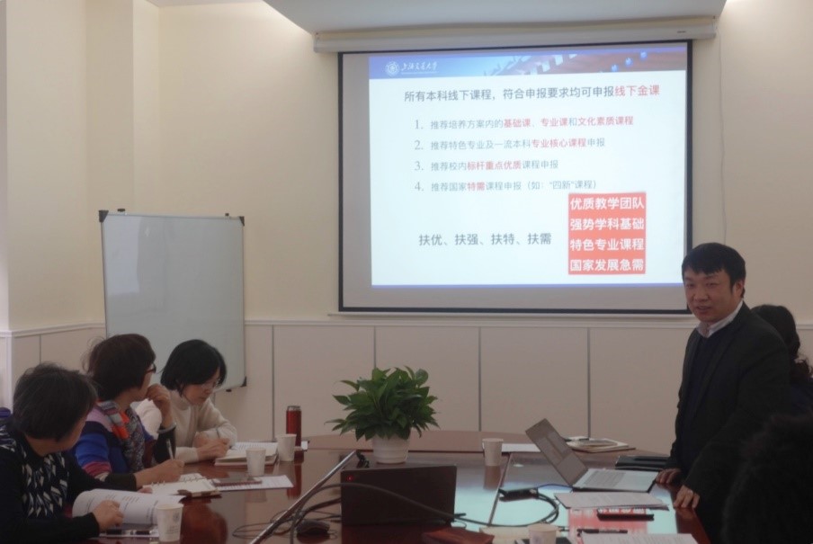 本次会议主要围绕如何建设线上线下混合式教学一流课程展开,讨论了教育部一流课程建设规划以及在线课程推进工作。会议根据教育部办公厅关于开展2019年线下、线上线下混合式、社会实践国家级一流本科课程认定工作的通知,讨论了目前课程建设情况并对下一步课程建设工作进行了部署。随后,余建波老师做了《助力金课-本科高校一流课程建设应用与申报》的报告,对哪些课可申报、哪些课不可报、通过什么渠道申报、课程适合申报什么类型、填报指南等内容做了细致的讲解。