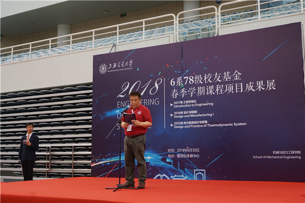 6系78级校友代表王维理肯定了项目式教学理念对提升交大学子创新创造能力、工程实践能力与团队合作能力的重要作用,表示将继续践行“饮水思源,爱国荣校”的校训,为学弟学妹提供有利的实践平台,为学校学院的发展添砖加瓦。