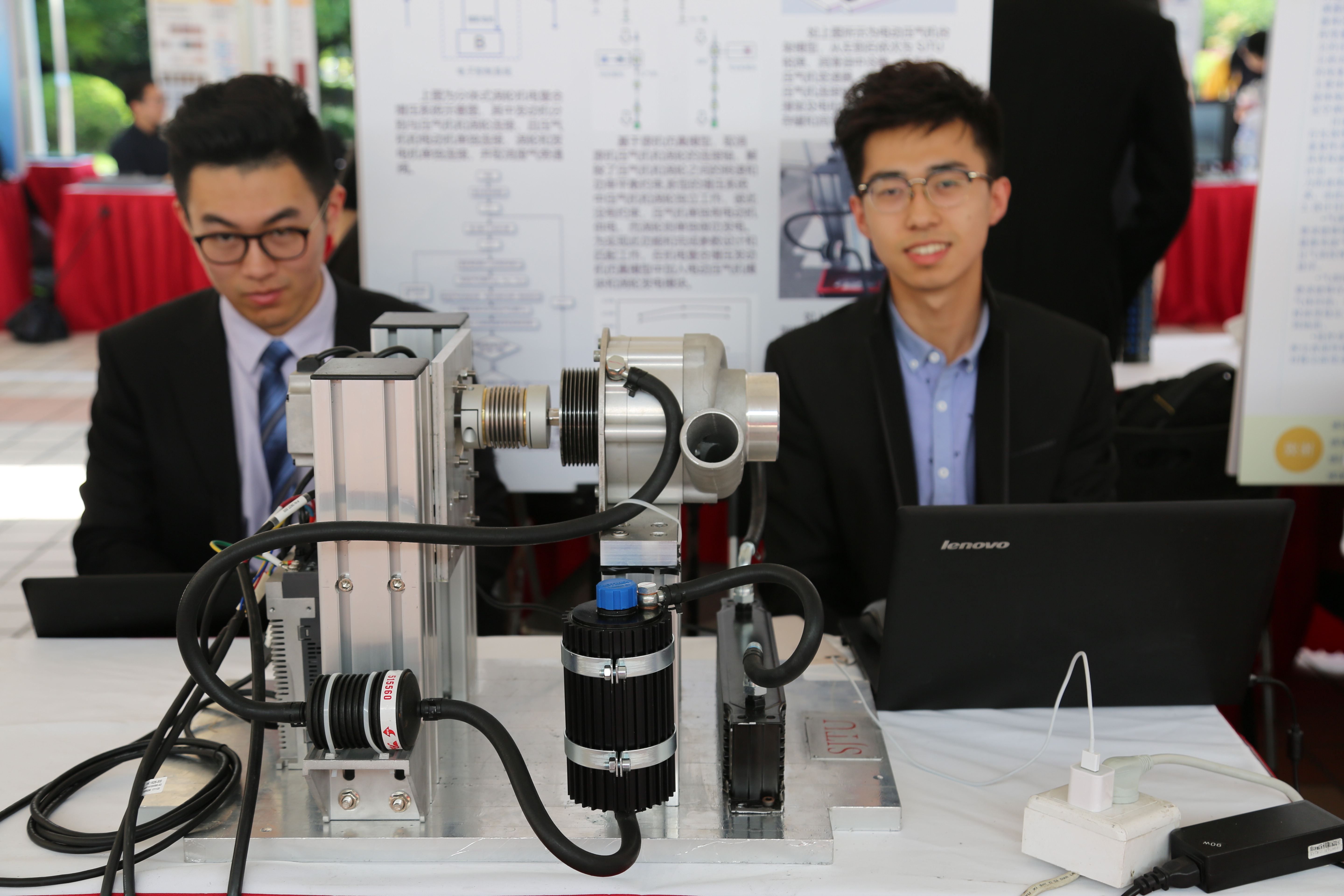 此次校企合作毕业设计项目展共展出了423名学生历时6个月完成的128个企业项目,这些项目分别来自于上汽大众、上海电气、泛亚汽车、Kern-liebers、Husqvarna、Johnson Controls、Timken等国际知名企业。每个项目由3-4名上海交大学生合作完成,其中11个国际毕设项目分别是与美国宾州州立大学、加拿大多伦多大学学生合作完成。发散的思维、工程学机理的应用、优化的设计方案、精心制作的仿真模型……一件件设计作品展现了学生的奇思妙想和扎实的工程实践能力,为前来参展的企业嘉宾和校内外师生提供了一场创意盛宴。毕业设计项目展现场,参展学生向嘉宾介绍各自项目的设计理念、思路等,校企嘉宾与学生展开积极的互动交流,并提出更优化的建议,学生们也感到受益匪浅。