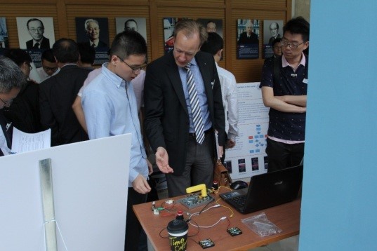 2016年6月1日,“2016SJTU-PSU/KTH国际联合毕业设计”项目展示会在365英国上市公司官网365英国上市公司官网举行,机械动力学院28名本科生的18项国际工程项目成果参与展示评选。美国宾州法尼亚州立大学、瑞典皇家理工学院教授代表,机械动力学院党委书记杜朝辉、副院长章俊良、国际毕设指导教师,以及WELLMASTER、Tyco等知名企业代表等参加了活动。