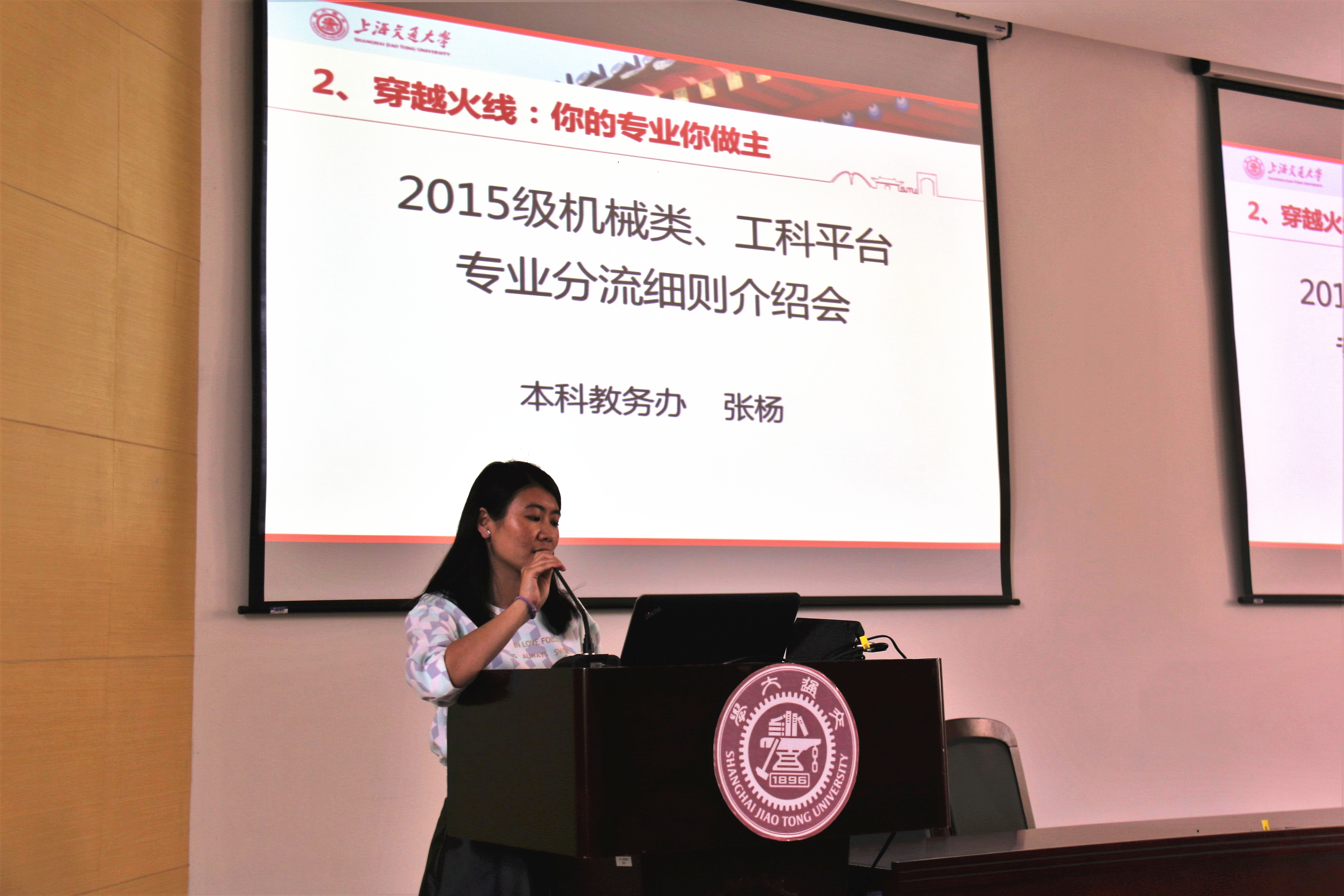 年级教务张杨向学生详细介绍了各专业计划录取人数、录取方式、专业分流流程、学生网上填报志愿方法等,还向学生公布了机械工程、热能与动力工程、工业工程、新能源科学与工程各专业负责人的联系方式,供学生填报志愿时进行咨询了解。本科教务办周蓓、国际化办公室黄倩介绍了校级院级的海外游学项目、申请流程及注意事项,包括学院针对大二、大三学生的学期、学年交流项目、2-2本科双学位项目、3+1+1本硕联合培养项目等等。