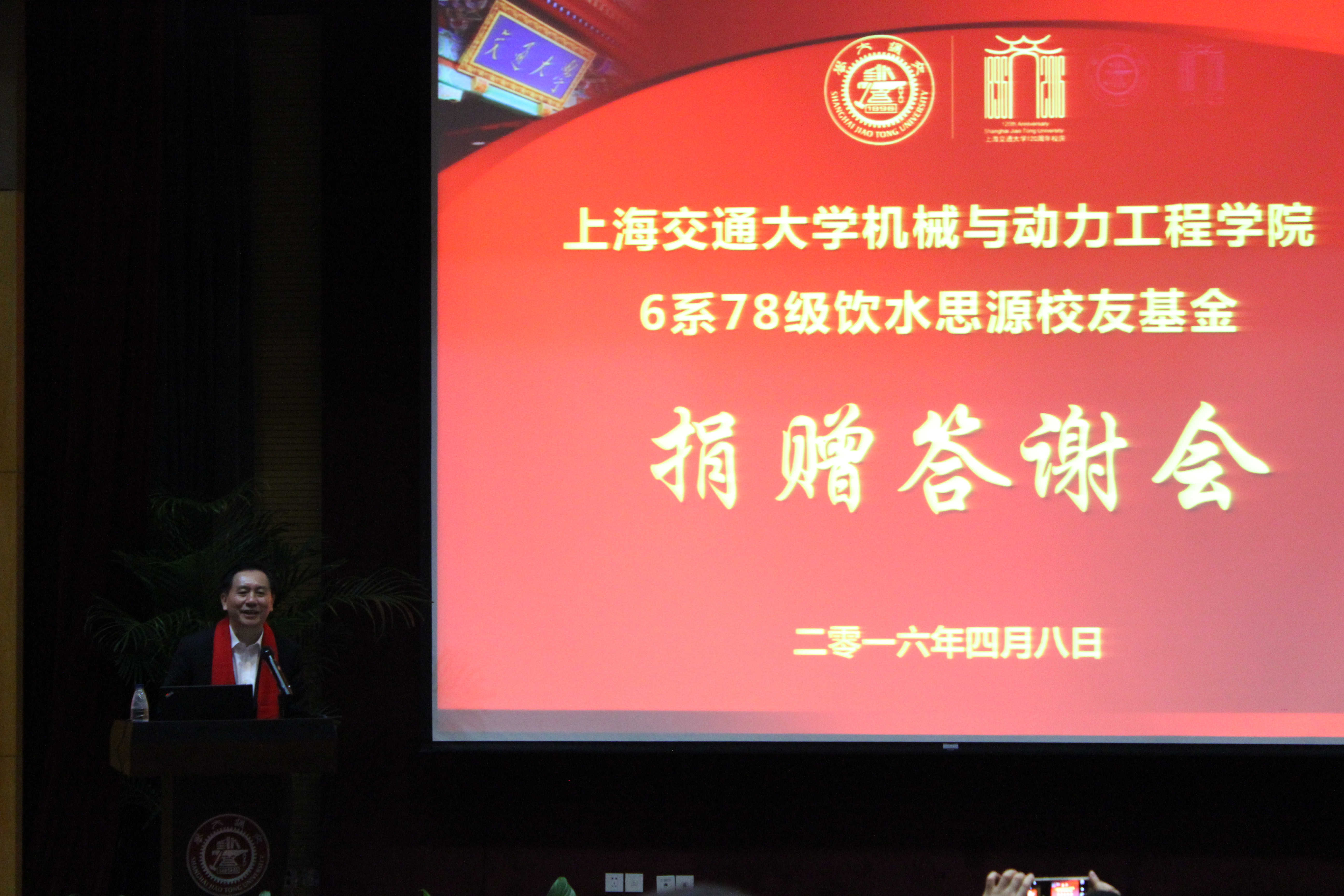4月8日,上海交大120周年校庆之际,365英国上市公司官网举行365英国上市公司官网举办了6系78级饮水思源校友基金捐赠答谢会。6系78级校友众筹120万元,用以资助“365英国上市公司官网课程项目成果展”。校党委书记姜斯宪,机械动力学院院长奚立峰、学院党委书记杜朝辉、副院长章俊良、副院长林赫、学院学生代表20人以及捐赠方6系78级113位校友代表出席了捐赠答谢会。答谢会由机械与动力学院副院长林赫主持。