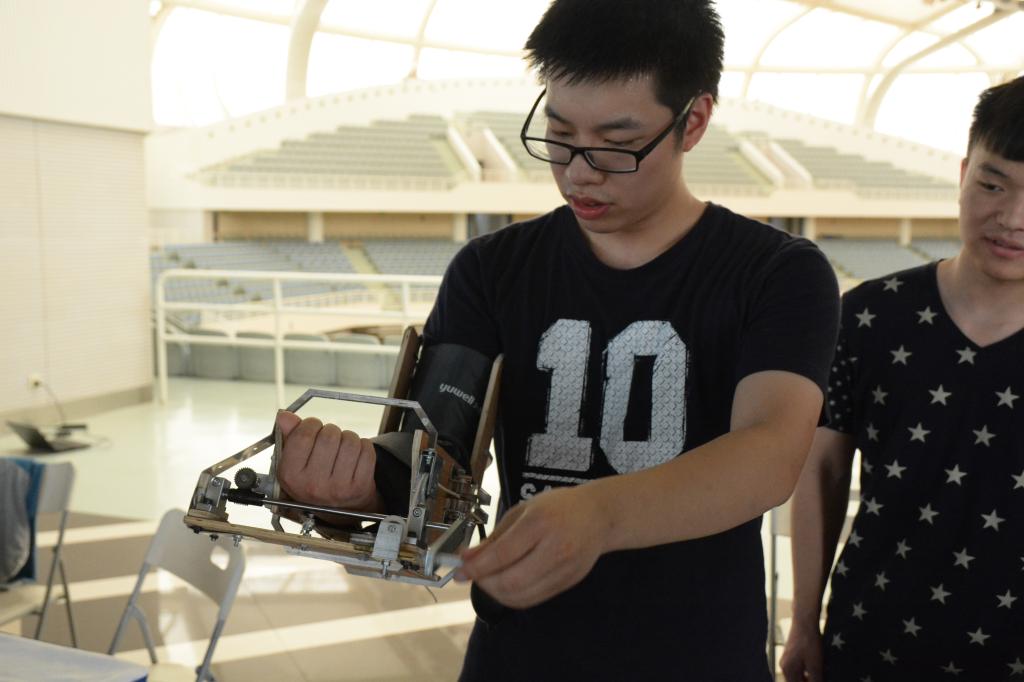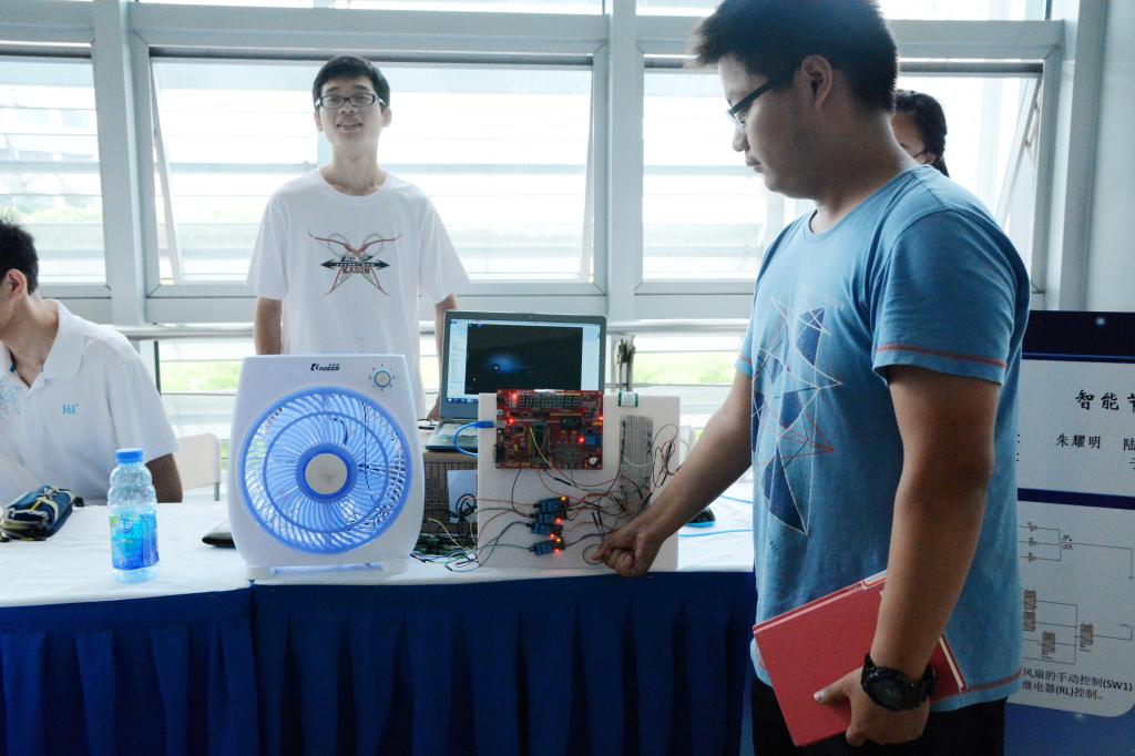 平价肘关节康复“神器”、省钱管家智能电扇、居家必备多功能头戴式控制器……这些奇思妙想近日都在365英国上市公司官网学子手中一一实现。6月14日,365英国上市公司官网2015年春季学期本科生课程项目成果展举行,共展出近千名本科生完成的《工程学导论》、《设计与制造I》及《工程设计》三门课程的217个课程设计项目。选题设计来自于校企合作项目、指导教师研究课题以及学生自选发明等。通过成果展示与校企专家评审的方式,让学生在展示过程中培养综合能力,在与专家及业界人士互动交流中激发创造力。