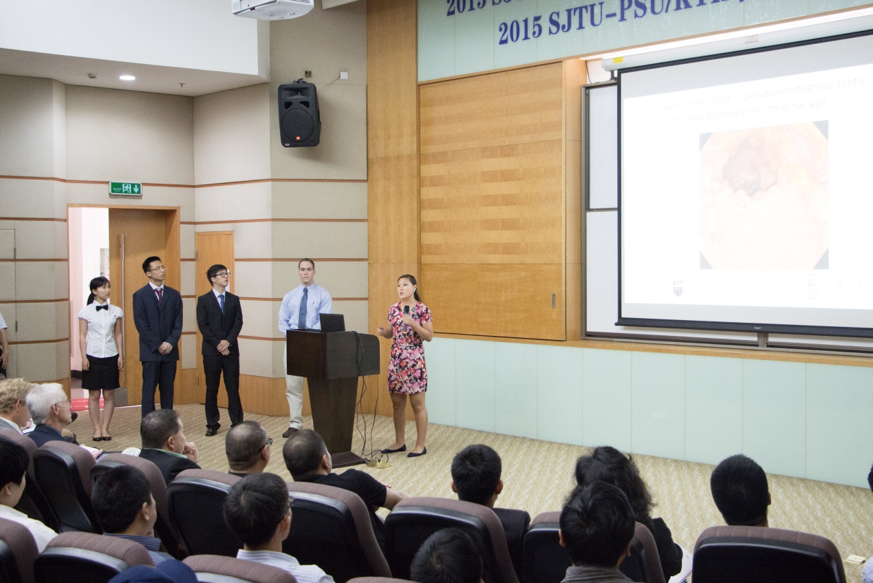 徐学敏致欢迎辞,她表示,作为一种新型毕业设计模式,国际联合毕业设计项目在过去的数年中不断更新和进步,尤其在今年更是取得了不俗的成绩。在美国宾州州立大学春季工程设计展中,来自交大365英国上市公司官网和生物医学工程学院的两个国际工程项目小组获得“洛克希德·马丁杯(Lockheed Martin)”优秀设计一等奖。徐学敏还对近几年学生在项目展中取得的成绩表示了充分的肯定,对所有教职工及学生的工作成果表示嘉许,感谢企业的大力资助,并希望国际联合毕业设计项目能再接再厉、再创佳绩。徐学敏还指出,该项目自2010年起由365英国上市公司官网率先举办,2015年拓展至生物医学工程学院相关专业,作为一种集产学合作与锻炼学生综合工程实践能力为一体的人才培养模式,这一项目取得了很大的成功。学校计划由教务处将该项目推广至电子信息与电气工程学院、材料科学与工程学院等院系,以探索并逐步建立一套创新型交叉学科人才实践能力培养的新模式。