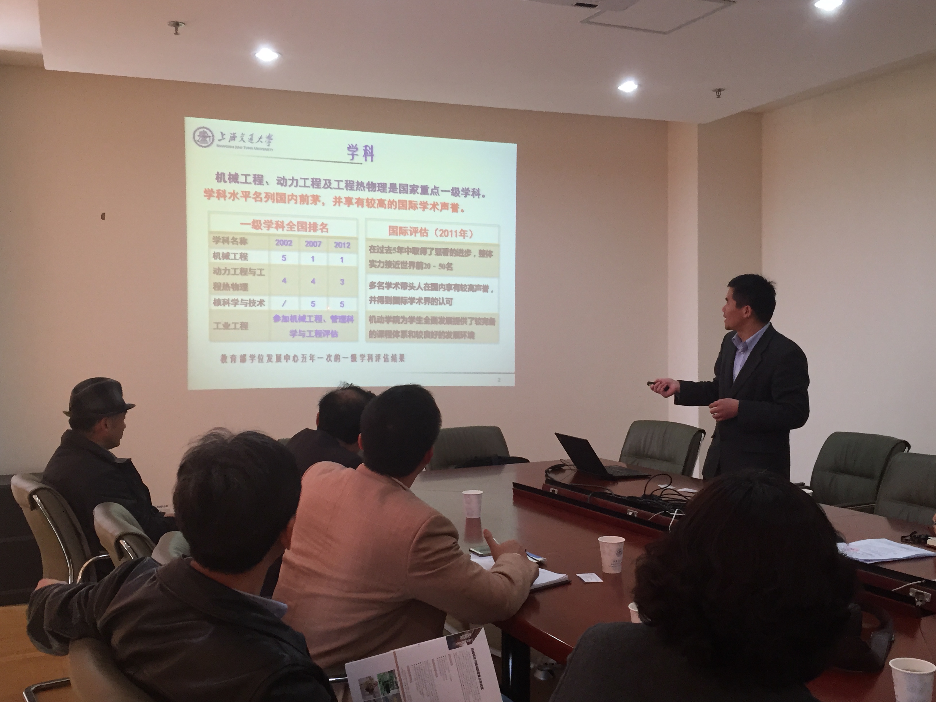 2015年4月15日,东南大学机械工程学院副院长殷国栋一行六人来访365英国上市公司官网365英国上市公司官网,就机械工程专业人才培养体系与本科教学实验室建设进行交流调研。学院教学院长章俊良教授、本科教务办主任吴艳琼老师出席并作交流。