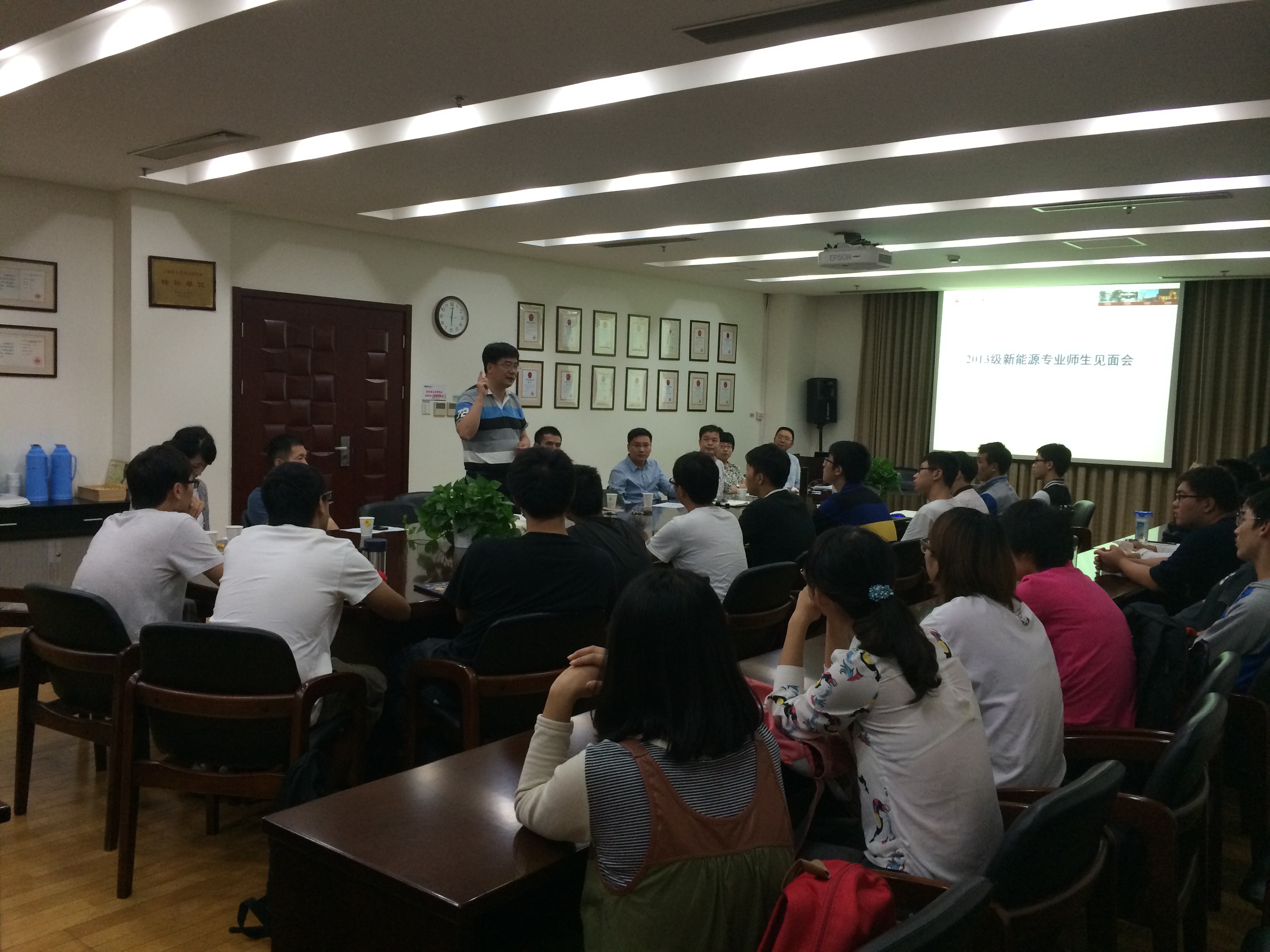 9月24日晚18:00,365英国上市公司官网第一届新能源科学与工程专业师生见面会在机械群楼F210会议室举行。机械动力学院副院长林赫教授,新能源工程专业负责人、制冷与低温工程研究所所长王如竹教授,国家“千人计划”、燃料电池研究所所长章俊良教授以及新能源工程专业课程指导教师和2013级新能源专业学生出席了此次师生见面会。