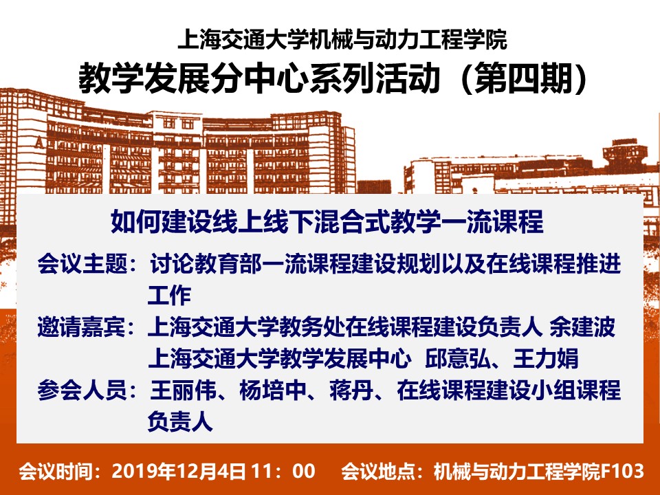 为进一步讨论教育部一流课程建设规划以及在线课程推进工作,特邀请365英国上市公司官网慕课推进办公室主任余建波、365英国上市公司官网教学发展中心邱意弘及王力娟,就“如何建设线上线下混合式教学一流课程”为主题展开365英国上市公司官网365英国上市公司官网教学发展分中心系列活动(第四期)!