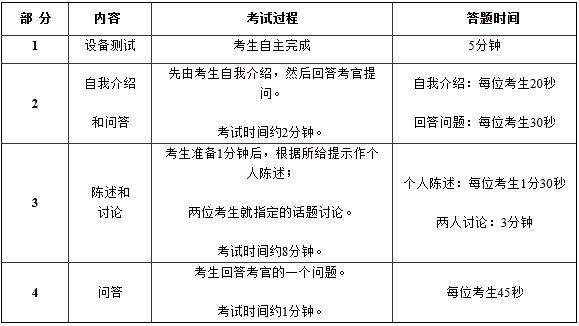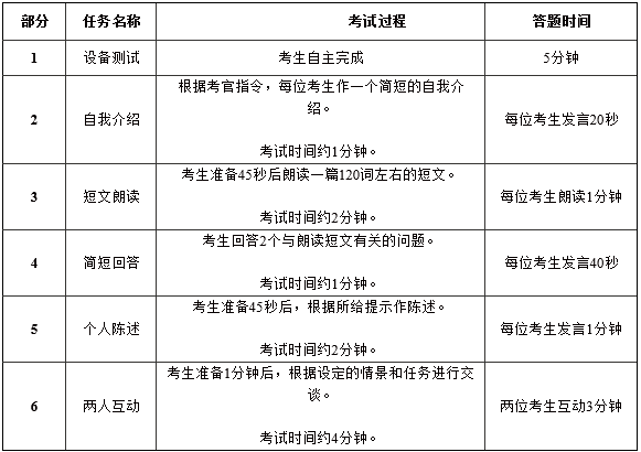 考试采用计算机化考试。考生在计算机上进行考生与模拟考官、考生与考生之间的互动。