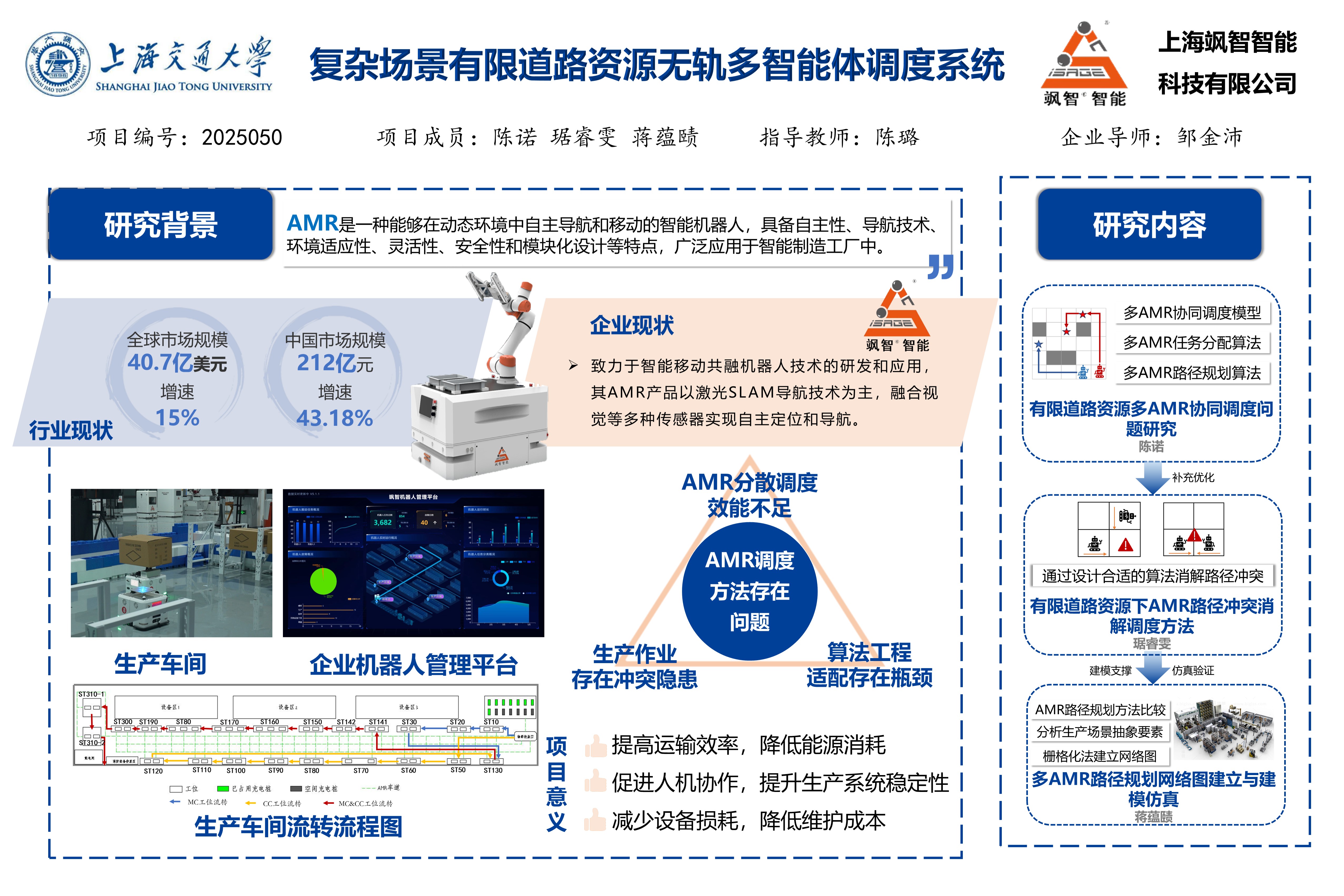 1. 开发有限道路资源下多 AMR 协同路径规划,提升计算效率与响应速度,实现任务自动分配与路径规划。