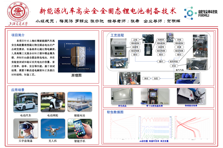 随着新能源汽车市场的迅速增长,对电池性能的不断提升成为行业关注的焦点。为从根本性上解决新能源汽车电池安全与续航问题, 硫化物全固态电池已被公认为是下一代动力电池的必然选择。本项目针对上海屹锂新能源汽车高安全高能量密度硫化物全固态电池的产品研发需求,对全固态电解质、正极和负极的材料结构、制备工艺进行优化,并制备Ah级软包动力电池,通过实验室测试验证电池性能。