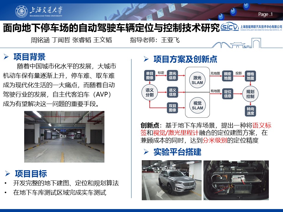 本项目的目标是建立一套完整的从多传感器感知到高精度建图及定位,最后规划并给出控制信号的地下车库泊车系统,实现在无GPS信号场景下的精准建图、定位及规划。