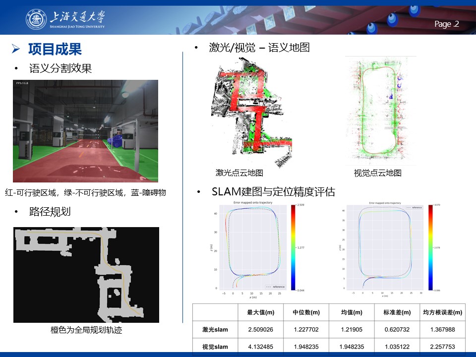 停车难、停车不规范并且易剐蹭都是泊车过程带来不便。地下停车场具有无卫星信号、场景简单、特征重复的特点,因此自动泊车的关键在于更精确的建图与定位。小组成员一方面用两种SLAM方法对场景进行建图与定位,另一方面引入语义分割提取出场景中每个物体的语义标签,在SLAM建图过程中进行优化并剔除动态物体,从而提高建图与定位精度。