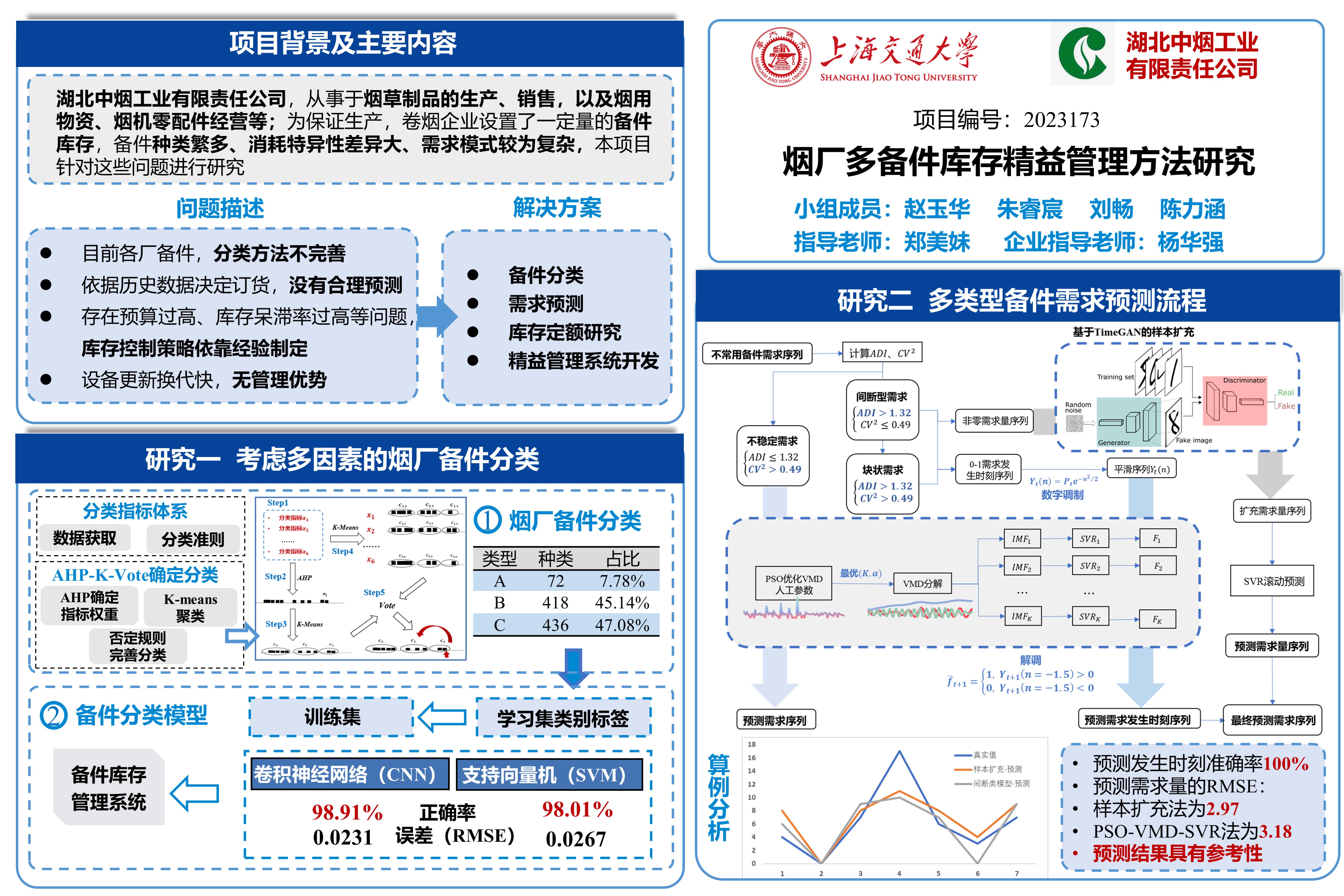 本项目涉及零备件分类、需求预测、库存控制及搭建交互系统。旨在通过多因素的备件分类以及基于需求预测的多类别库存定额的研究,并设计交互系统输出结果,指导企业进行零备件库存精益管理,提高生产效益,控制库存成本。