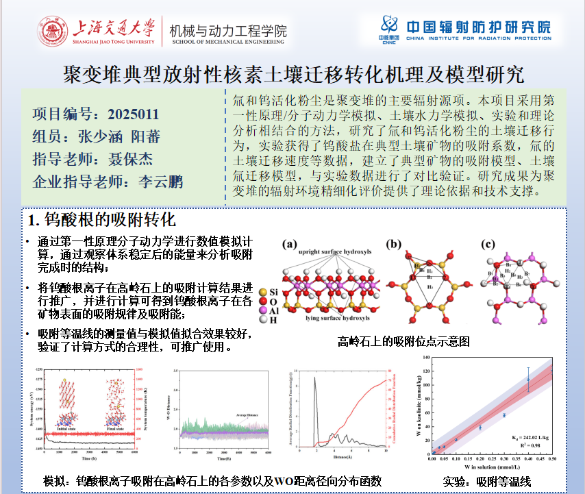 聚变堆是核能发展的最终选择,也是目前人类解决未来能源问题的根本途径之一。钨及其合金因其高熔点、低溅射率及较低的氚滞留等优势被认为是理想的面向等离子体候选材料,在高能中子辐照下,聚变堆运行中会产生一定水平钨活化粉尘;氚是聚变堆的燃料,堆内氚盘存量可达千克量级。氚和钨活化粉尘具有可移动性特点,是聚变堆的主要辐射源项。特别在事故工况下,会向环境释放一定水平氚和气载钨活化粉尘,经大气扩散沉积在周边土壤环境中。氚和钨活化粉尘在土壤中会发生复杂行为:形态转化、吸附/解吸、迁移等,其迁移转化机制尚不明确,模型尚未建立。