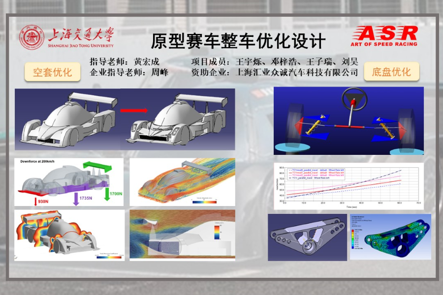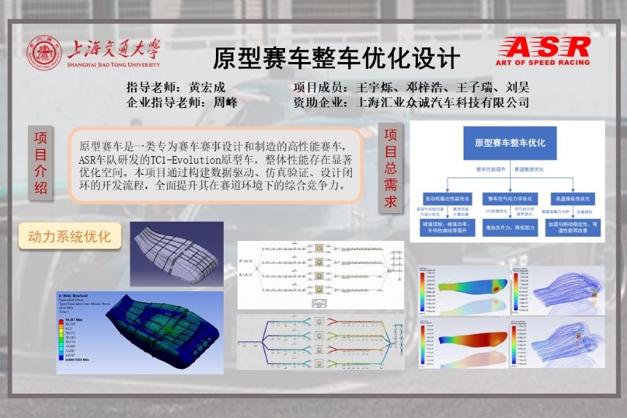 原型赛车是一类专为赛车赛事设计和制造的高性能赛车,相比量产车,原型赛车更注重极致的操控性能,设计过程中需要大量创新与测试,以实现高速、精确操控、耐久性与安全性的统一。由上海汇业众诚汽车科技有限公司(ASR车队)研发的TC1-Evolution原型车,基于FIA(国际汽车联合会)CN2组别规范,具备轻量化、高效能和出色操控性等优势。尽管该车型目前已在较低成本下实现了良好操控表现,但在发动机动力总成、空气动力学布局以及悬挂几何等方面仍存在设计粗糙、缺乏系统理论和仿真支撑的问题,整体性能存在显著优化空间,需通过系统化升级提升整车竞争力。