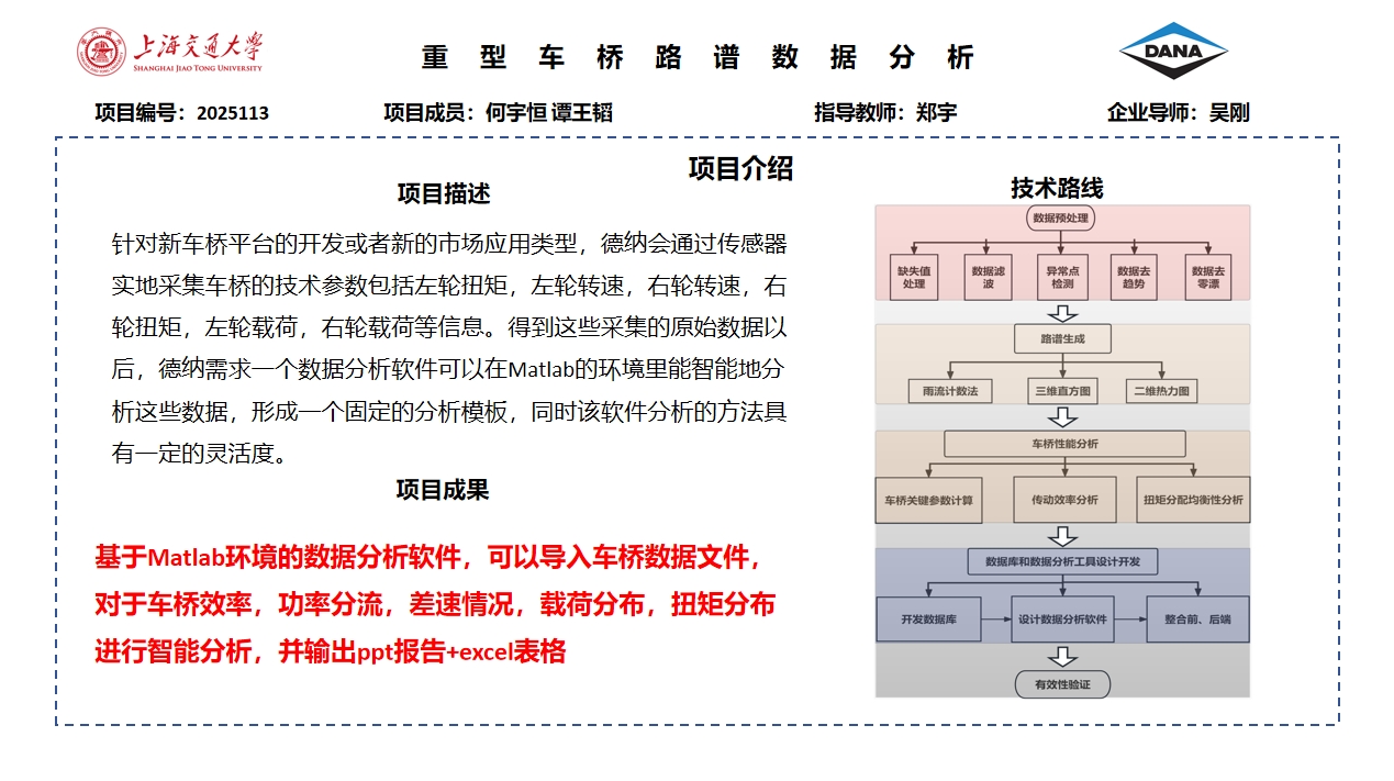 重型车桥路谱数据分析项目旨在开发一款基于Matlab的智能数据分析软件,以高效处理和分析重型车桥在实际道路条件下的运行数据。车桥作为车辆的关键部件,其性能直接影响整车的承载能力和行驶安全。本项目通过采集车桥的载荷、扭矩、转速等数据,运用先进的数据处理和分析技术,生成可视化路谱分析图表,为车桥的性能评估和设计优化提供科学依据。项目结合了数据预处理、特征提取、分布拟合等技术手段,旨在解决传统方法在处理海量时序数据时的效率和准确性问题。
