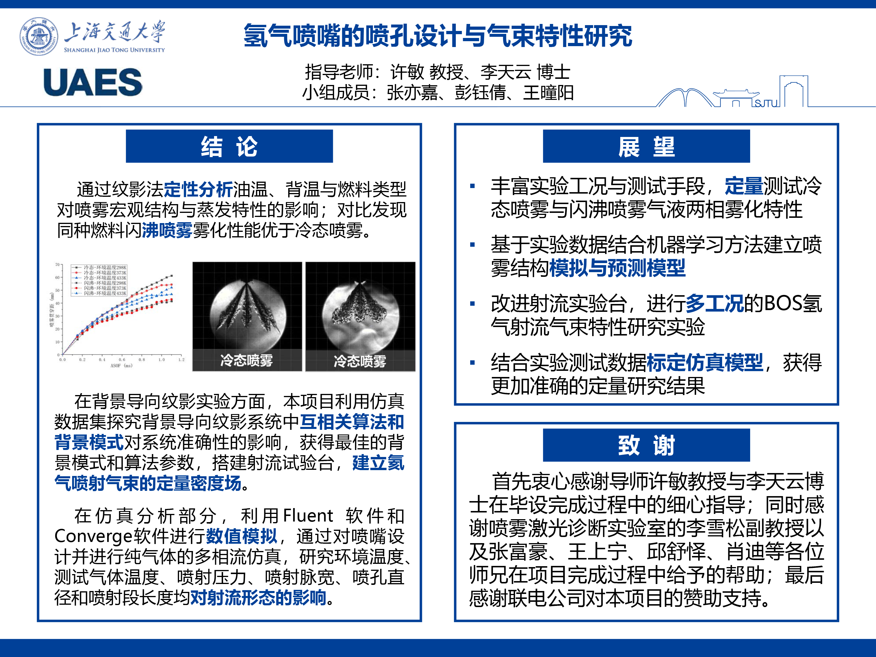 在高速纹影实验方面,本项目围绕改进的“Z”型反射式纹影光路成像系统构建实验测试平台,研究燃料喷射温度与喷射环境温度两个重要的喷射条件参数以及燃料类型对喷雾气液两相宏观结构与蒸发特性的影响。