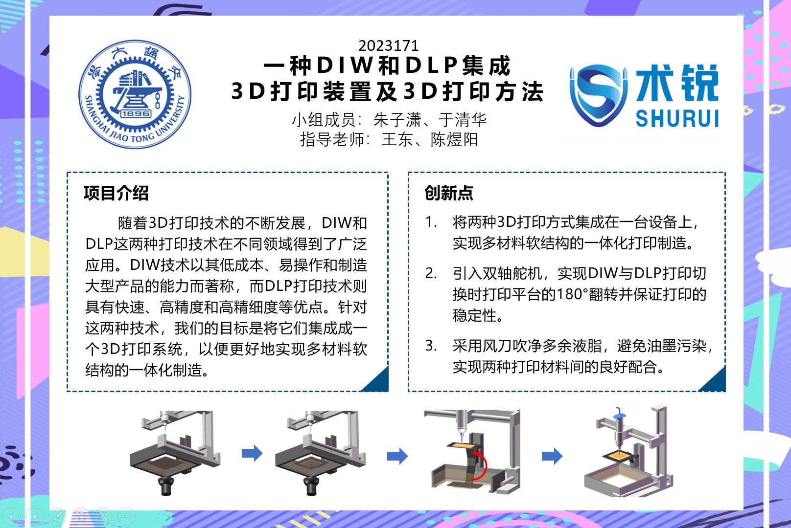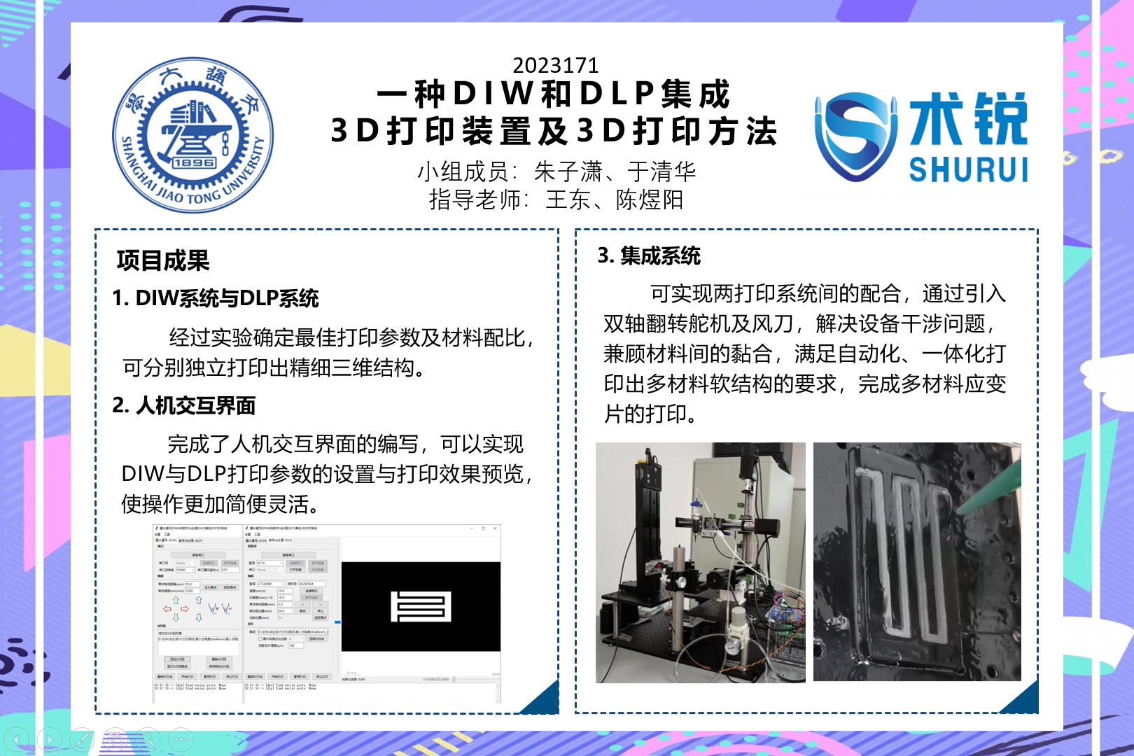 对于DLP方向,我们需要考虑打印平台的优化设计和打印材料的选择,保证打印的精度和质量。对于DIW方向,我们需要设计一个完整的DIW打印系统,实现三轴移动的控制,并编写解析G代码的程序。为了将DIW和DLP集成为一个3D打印系统,我们需要进行结构设计、加工和硬件平台的搭建,充分考虑两系统间的位置与材料配合。另外,我们需要编写DIW和DLP集成3D打印系统的一体化控制程序,制作出一款简洁明了的交互程序,方便操作人员进行参数调试,并能够实现自动化打印。