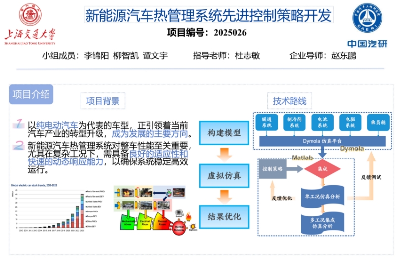 基于项目现状,本项目拟开展新能源汽车热管理系统先进控制策略的开发研究。项目要求针对一特定的新能源汽车热管理系统,使用modelica语言和Dymola仿真平台建立制冷剂循环系统、暖通系统、电驱系统、电池系统仿真模型,并建立八通阀模型将四个子系统集成为整车热管理系统,在此基础上在Matlab中建立热管理控制器及控制逻辑,选择合理的控制方法实现乘员舱系统、电池系统、电驱系统的温度控制,并开发单系统以及多系统集成的典型工作模式。