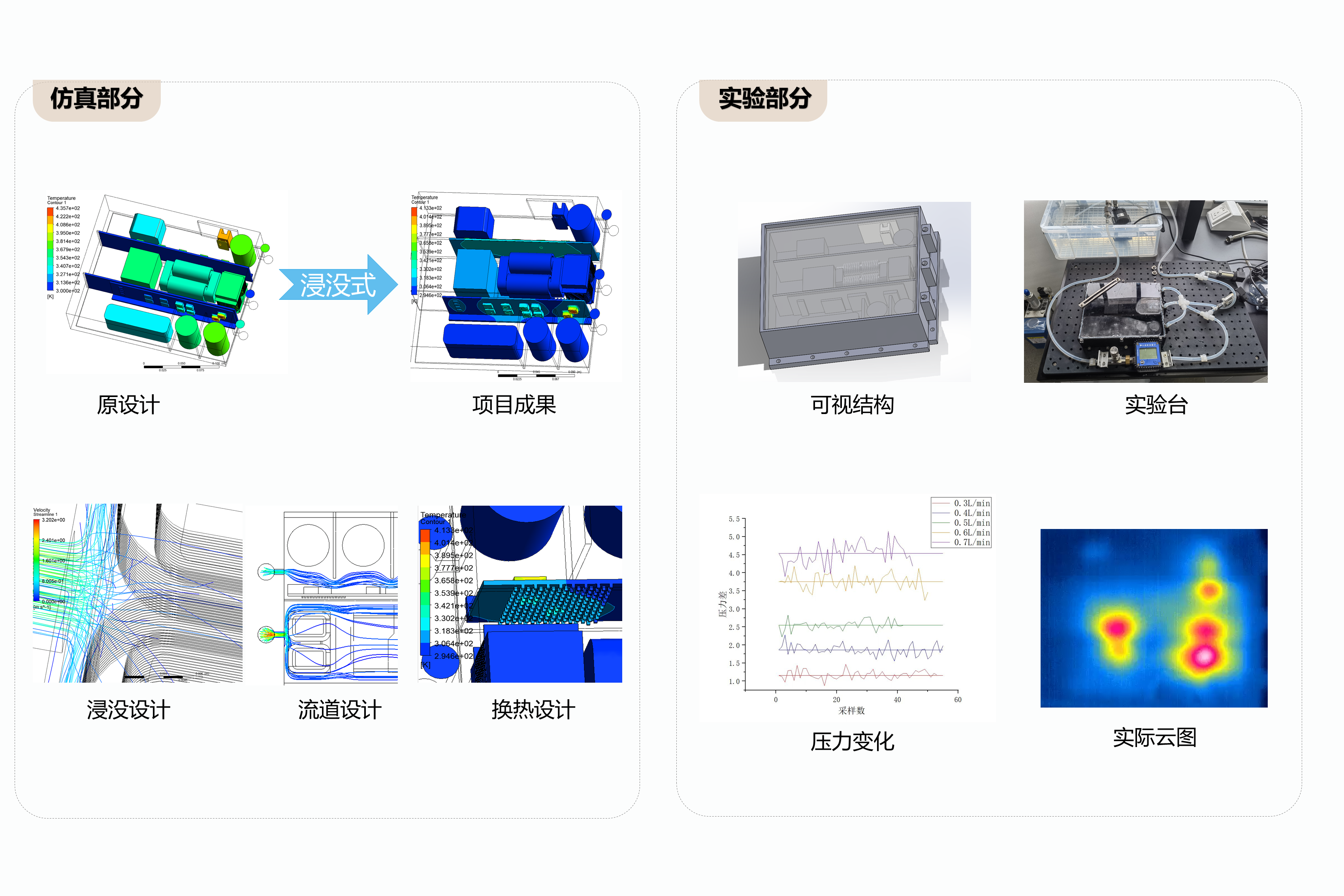 进一步地,根据上述结论设计浸没式冷却结构,计算分析不同冷却结构的散热性能,并基于实际工况进行验证测试。