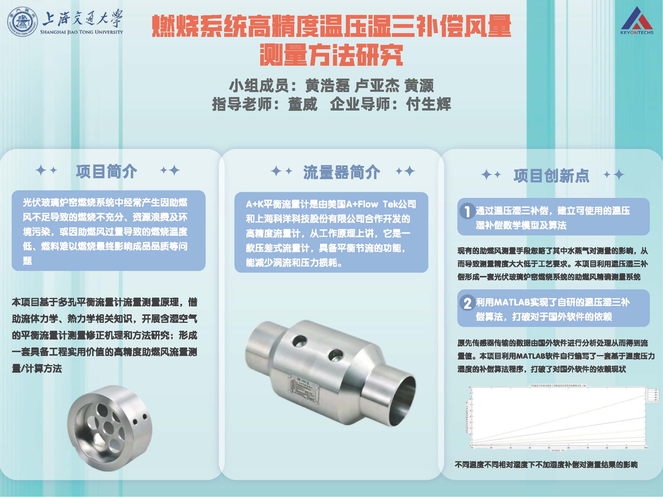 总体目标为形成一套具备工程实用价值的高精度助燃风流量测量/计算方法。具体包括:基于多孔平衡流量计流量测量原理,借助流体力学、热力学相关知识,开展含湿空气的平衡流量计测量修正机理和方法研究;通过温压湿三补偿,建立可使用的温压湿补偿数学模型及算法,提高助燃风风量测量的精度,提高燃烧比,减少能源损耗和污染物的排放;形成一套光伏玻璃炉窑燃烧系统的助燃风精确测量系统;对现场实际使用的经济效益进行评估。