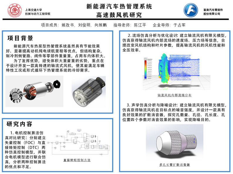 为了发挥优势,避免体积大重量重的劣势,重点在于设计开发一款高转速的轴流式风机,使其能满足车辆特性工况或形式循环下热管理系统的冷却需求。