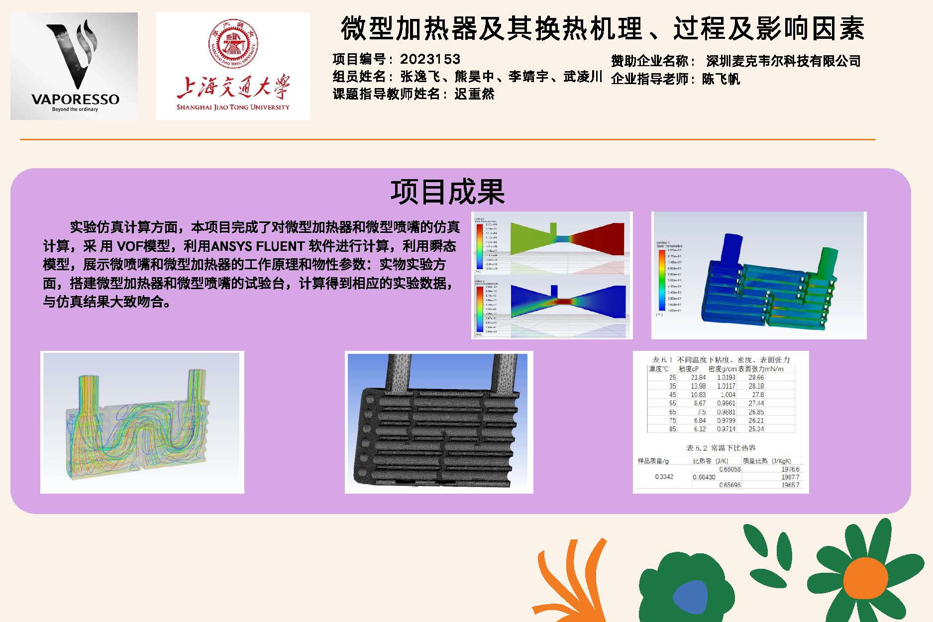 我们拟优化设计一款微型电子雾化装置,由微型雾化喷嘴与微型换热器组成,投入特定组分的液体经装置处理能得到气溶胶。为此需要了解液体在雾化器与加热器内相变、雾化、沉积等变化过程,通过数值仿真的方法优化雾化器、换热器参数,并通过实物实验确定优化方向,指导优化设计雾化器、换热器。我们的研究重点将是系统的尺寸问题。微型雾化-加热系统的尺寸在 10^0 -10^1 mm 量级,即本项目需要开展小尺寸下低雷诺数液体的流动、换热、雾化、相变过程的分析计算。