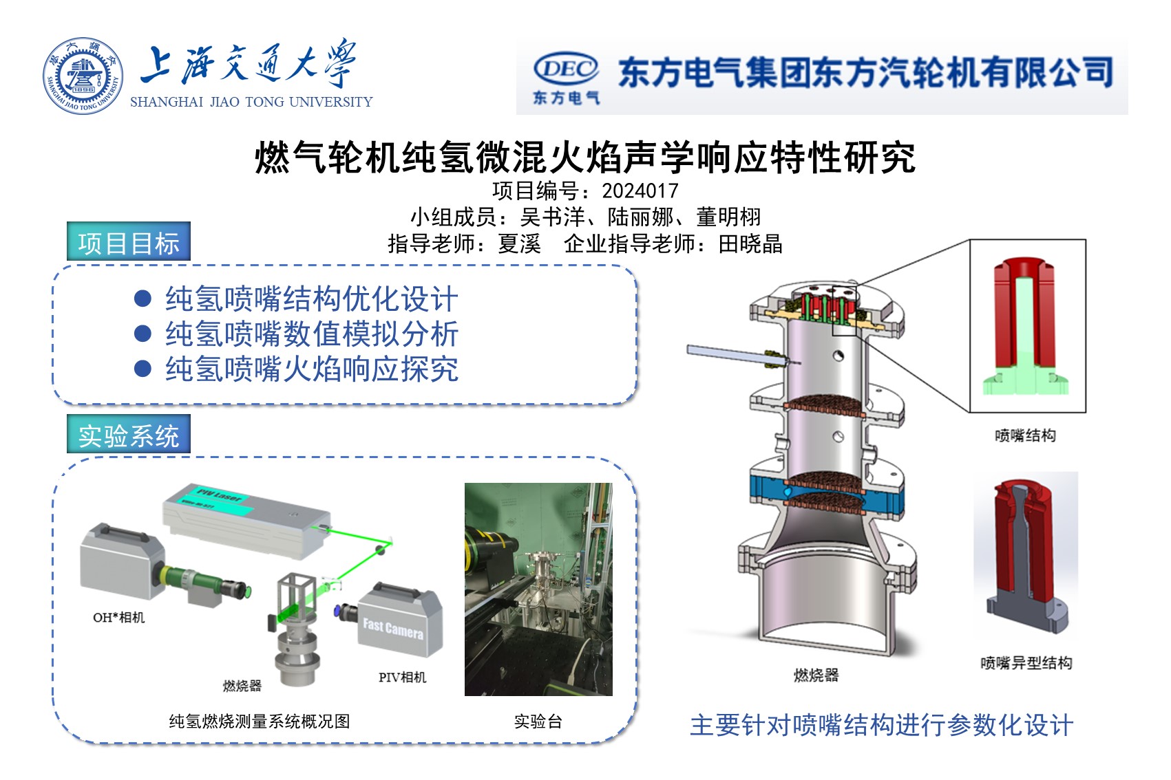 在氢燃料燃气轮机运行过程中,噪声是不可避免的问题。在氢气燃烧中,燃烧室可能会发生谐振频率的模式切换,影响火焰运行,同时火焰在动态稳定到不稳定燃烧过程中,氢气的增加会产生间歇动力学区域。此外,氢富集会增加燃烧动力学诱导的闪回倾向,促进周期性闪回事件和热声不稳定性的耦合。本课题将以东方汽轮机有限公司的需求为目标,从微预混纯氢燃烧存在的严重的热声振荡问题出发,结合企业对火焰稳定性、额定功率、污染物排放限制等要求对燃烧器结构进行数值模拟、实验探究验证与参数优化。