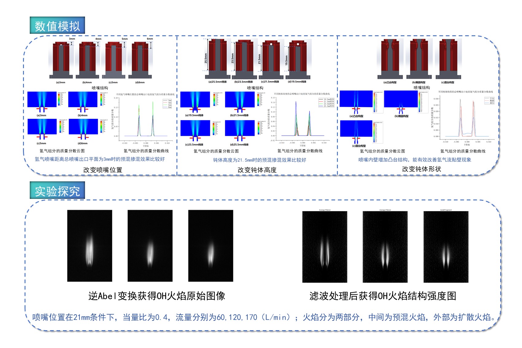 结合数值模拟和实验探究所得的数据进行分析,设计一种纯氢微混燃气喷嘴,针对影响纯氢燃烧特性的关键几何特征开展参数化设计,最终形成纯氢微预混燃烧喷嘴的参数化设计准则。