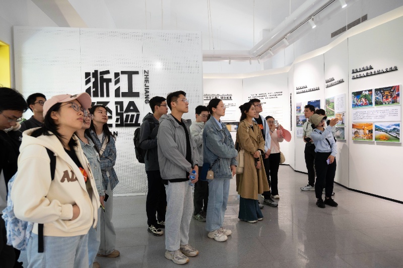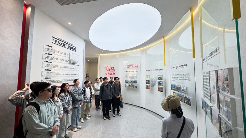 在余村“两山”景区,学生党员骨干们沿着习总书记走访路线,亲身感受到了余村从“矿山村”蝶变为“生态村”的绿色发展轨迹;在千万工程展览馆中,学生党员骨干们详细了解到了浙江省“千万工程”构建美丽乡村的实践成果,以及余村如何以“千村示范”带动“万村整治”,探索出生态优先、绿色发展的乡村振兴之路的经验启示。