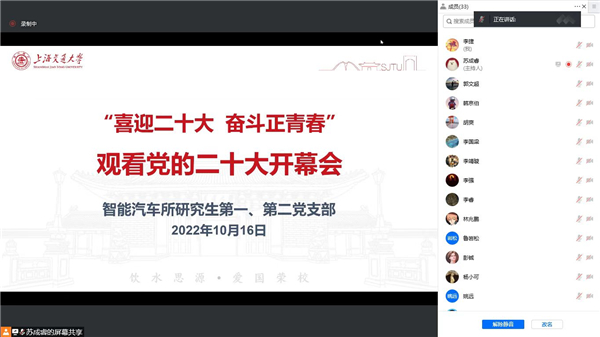 • 喜迎二十大,奋进新征程——智能汽车所研究生党支部组织集体收看党的二十大开幕会直播活动[图]