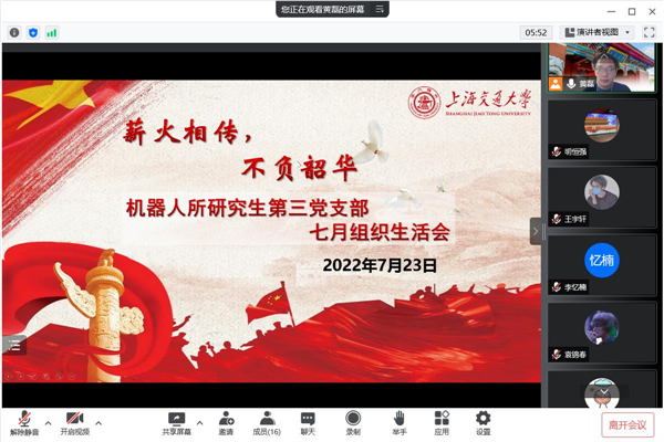 • 机器人所研究生第二党支部召开“薪火相传,不负韶华”七月组织生活会[图]