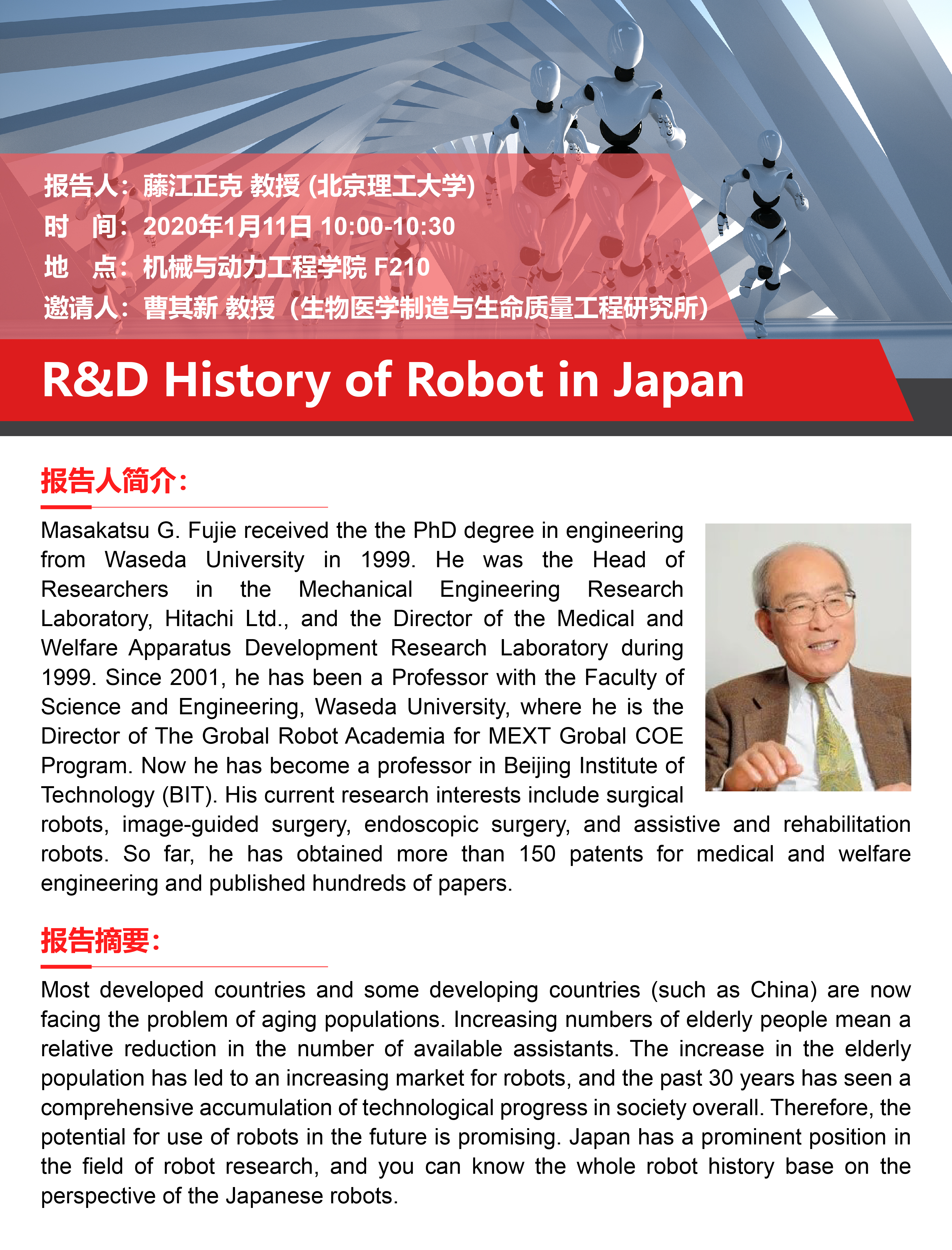 Most developed countries and some developing countries (such as China) are now facing the problem of aging populations. Increasing numbers of elderly people mean a relative reduction in the number of available assistants. The increase in the elderly population has led to an increasing market for robots, and the past 30 years has seen a comprehensive accumulation of technological progress in society overall. Therefore, the potential for use of robots in the future is promising. Japan has a prominent position in the field of robot research, and you can know the whole robot history base on the perspective of the Japanese robots.