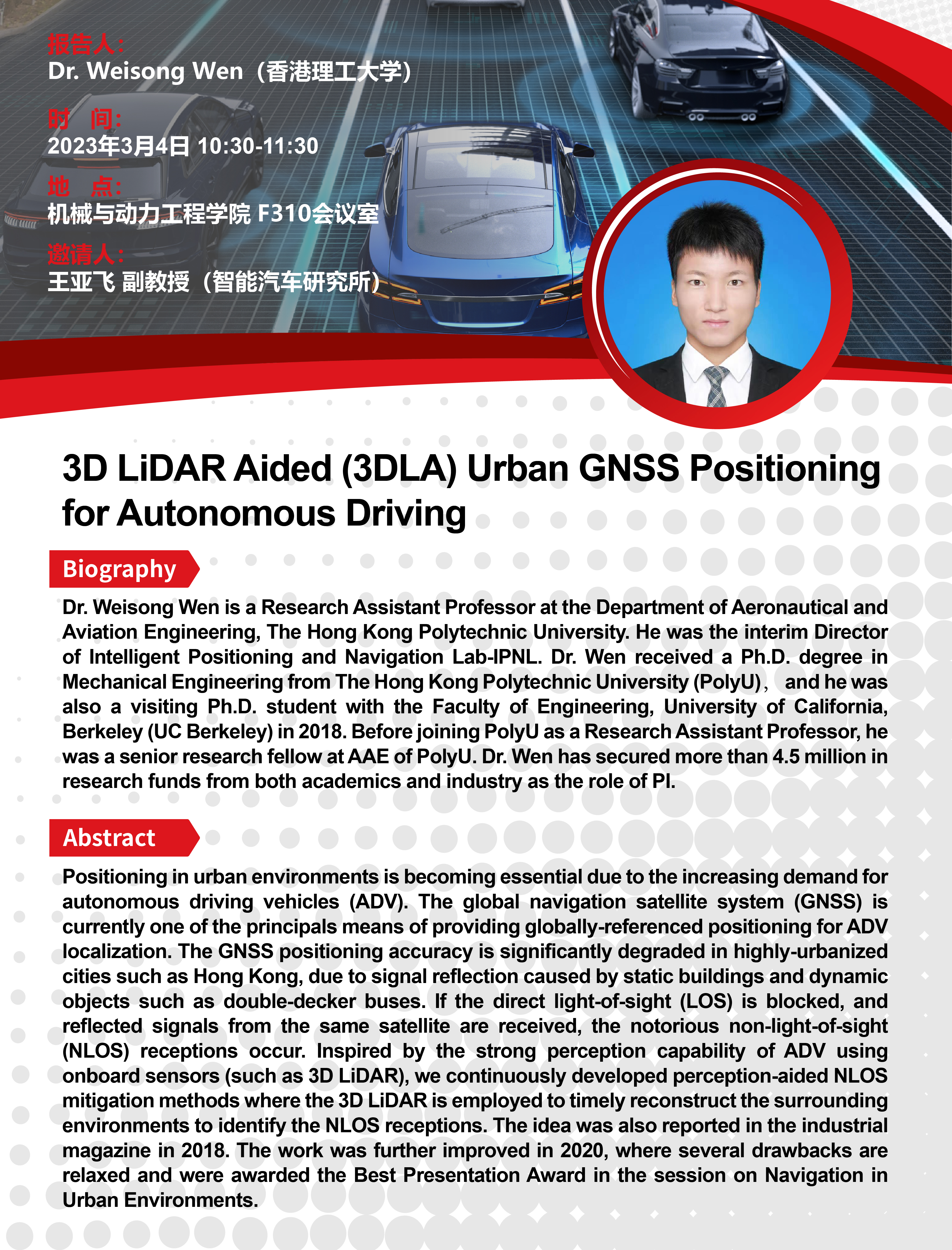Speaker: Dr. Weisong Wen (The Hong Kong Polytechnic University)